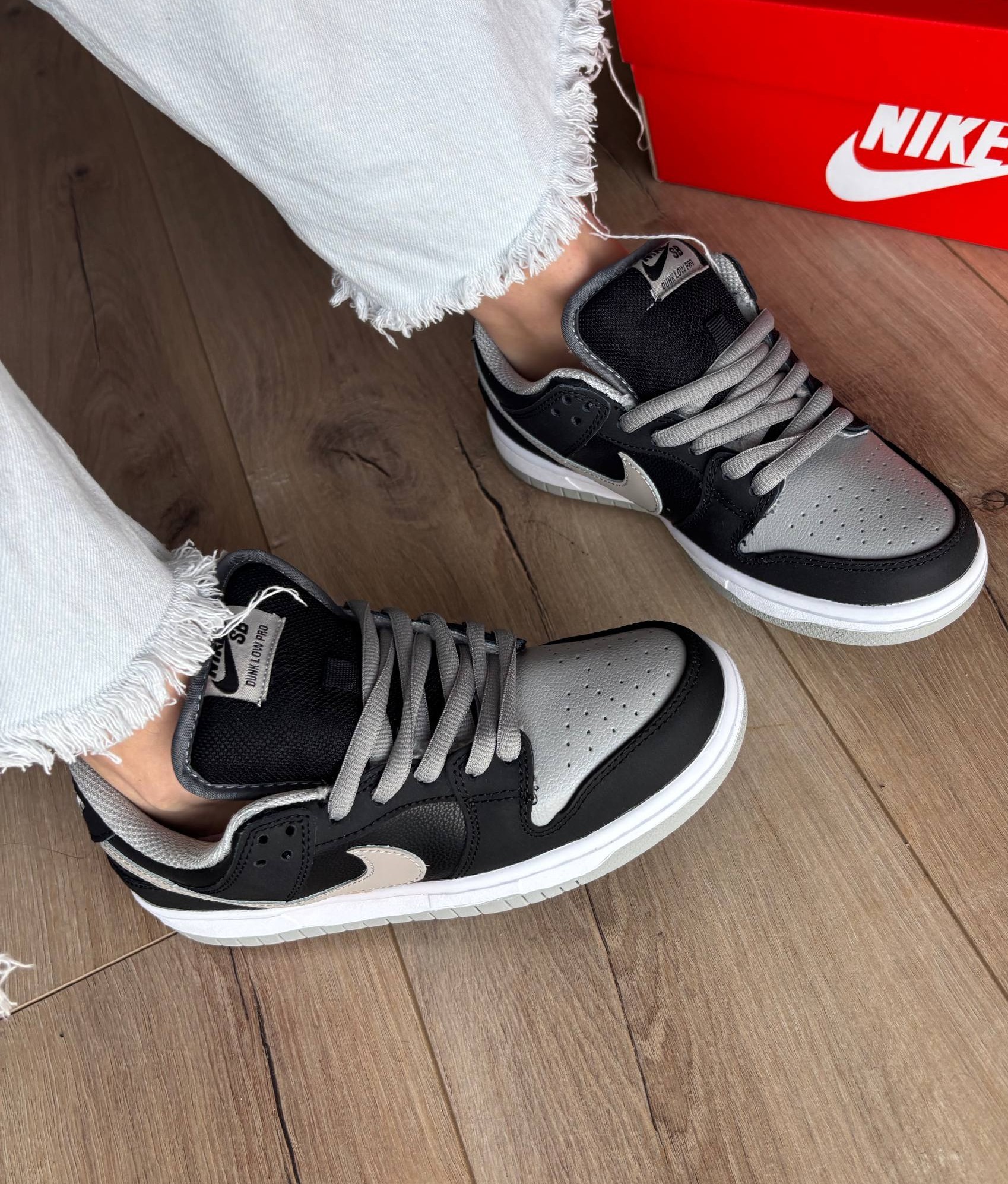 Nike Dunk Low J-Pack Shadow — це легендарний силует у класичному поєднанні сірого та чорного кольорів, доповнений м’яким утепленим хутром для максимального комфорту в холодну пору.