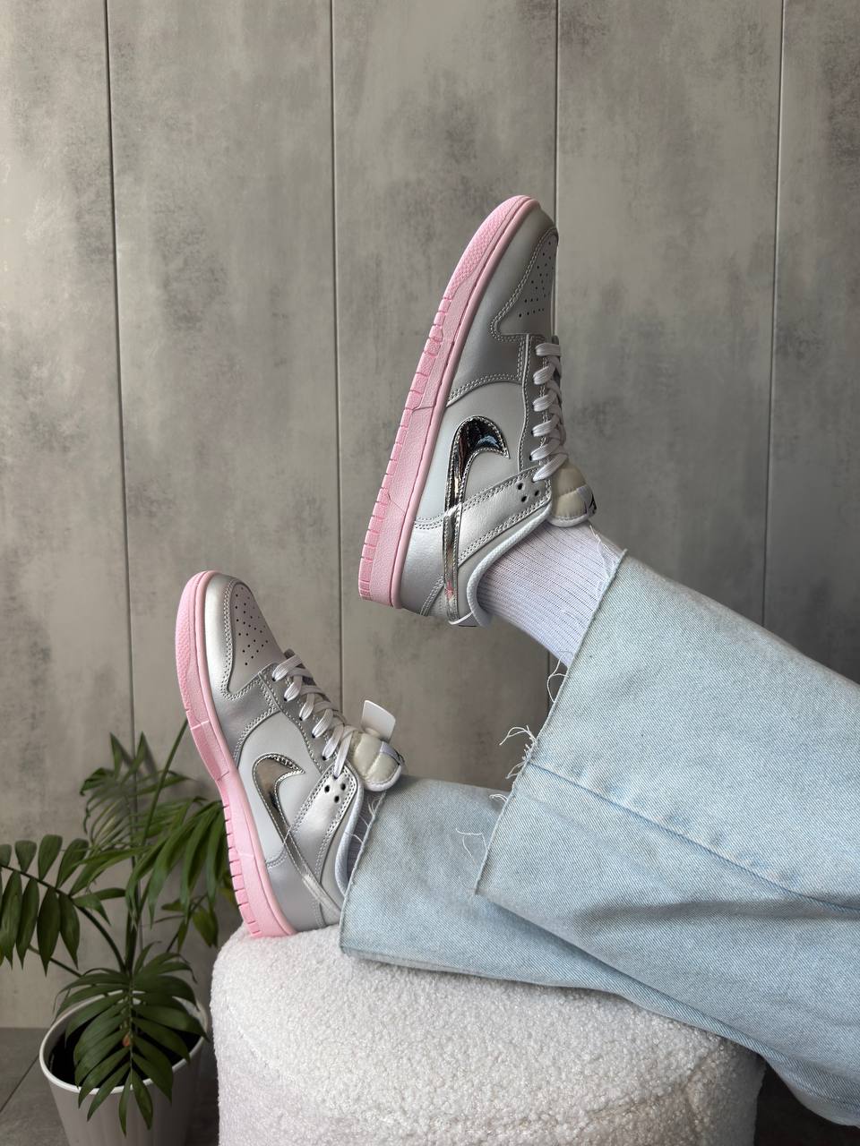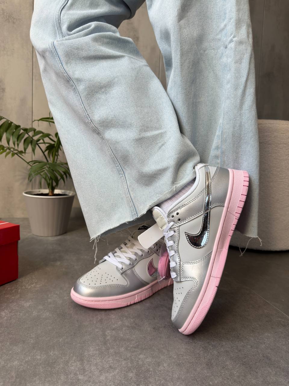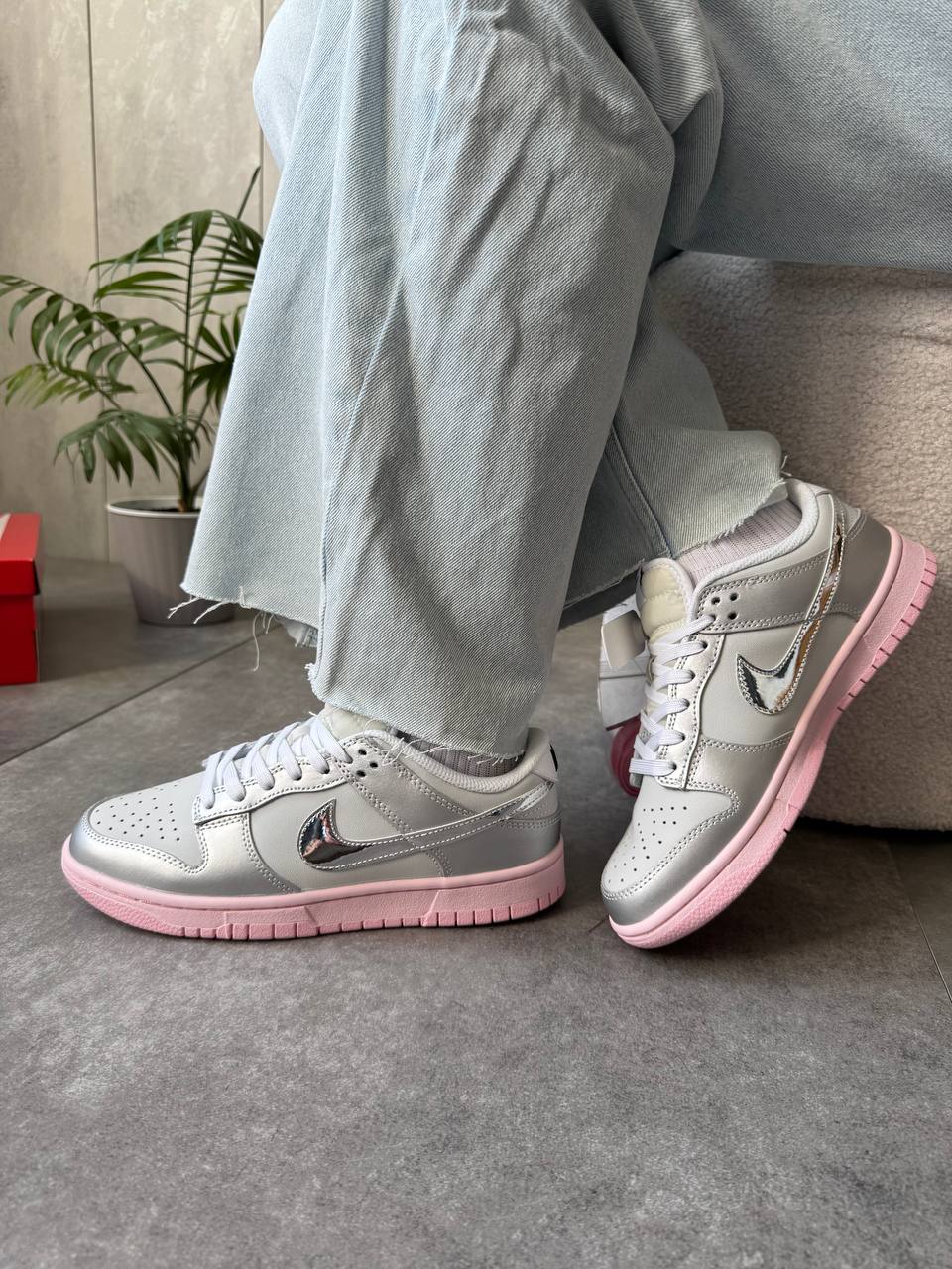 Nike Dunk Low LX Metallic Silver Pink Foam — це ефектні кросівки з металізованим срібним верхом і ніжно-рожевими акцентами, які додають образу сучасного й модного настрою.
