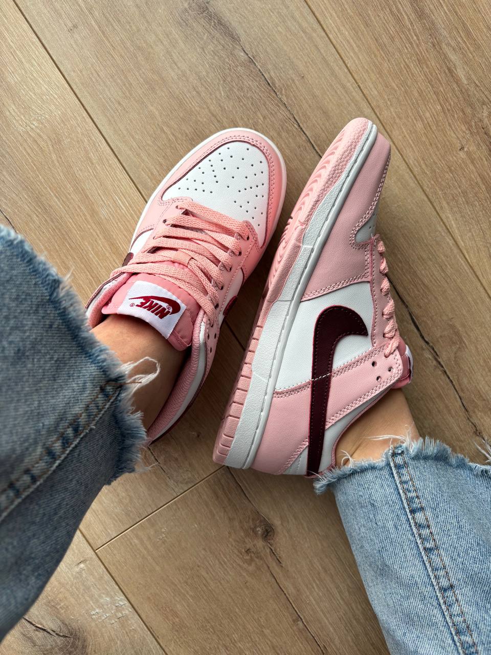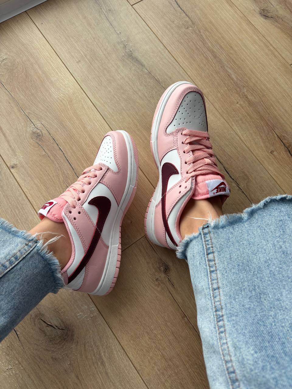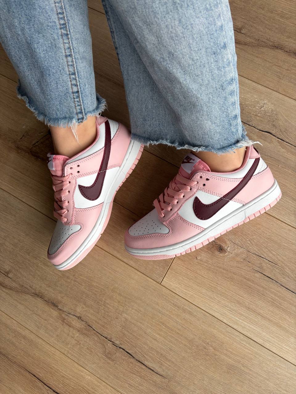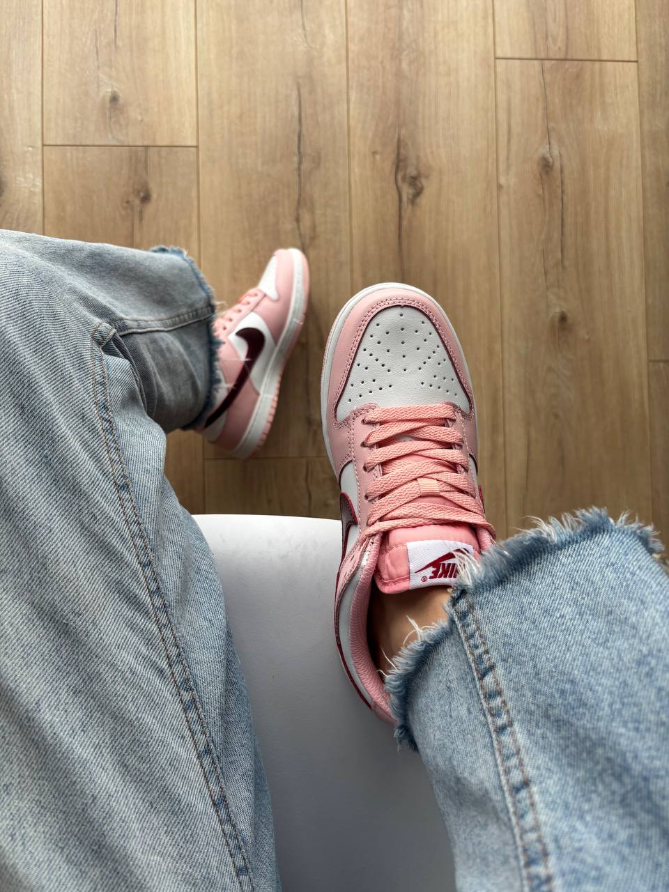 Nike Dunk Low Pink Foam Red White — це класичні низькі кросівки з м’яким рожевим (Pink Foam), червоними та білосніжними акцентами, що поєднують ретро-силует і яскравий, стильний вигляд для щоденного стрітстайлу.