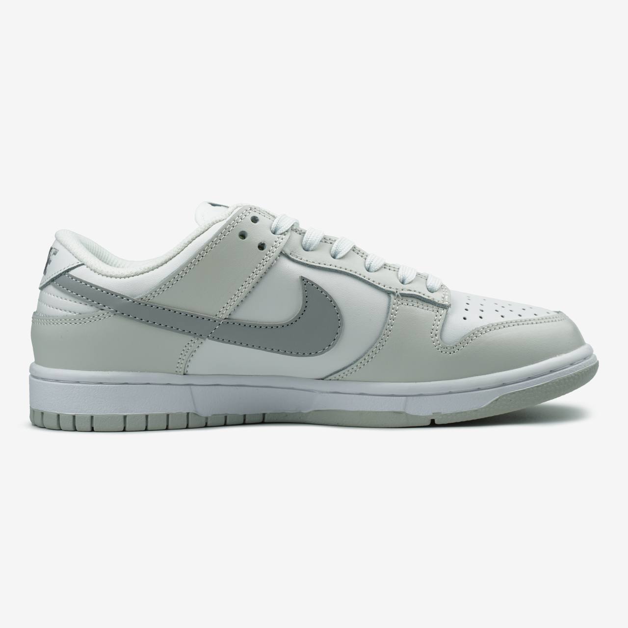 Nike Dunk Low White Grey — це поєднання класичного баскетбольного силуету, нейтральної кольорової гами та щоденного комфорту. Поєднання білого та сірого створює чистий, збалансований образ, який виглядає стримано та універсально, а впізнаваний дизайн Dunk додає моделі характеру й актуальності в streetwear-стилі.