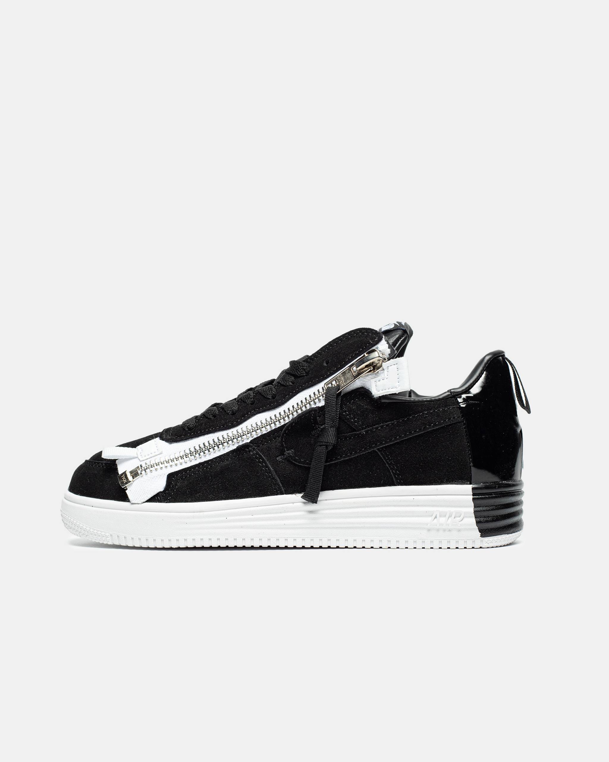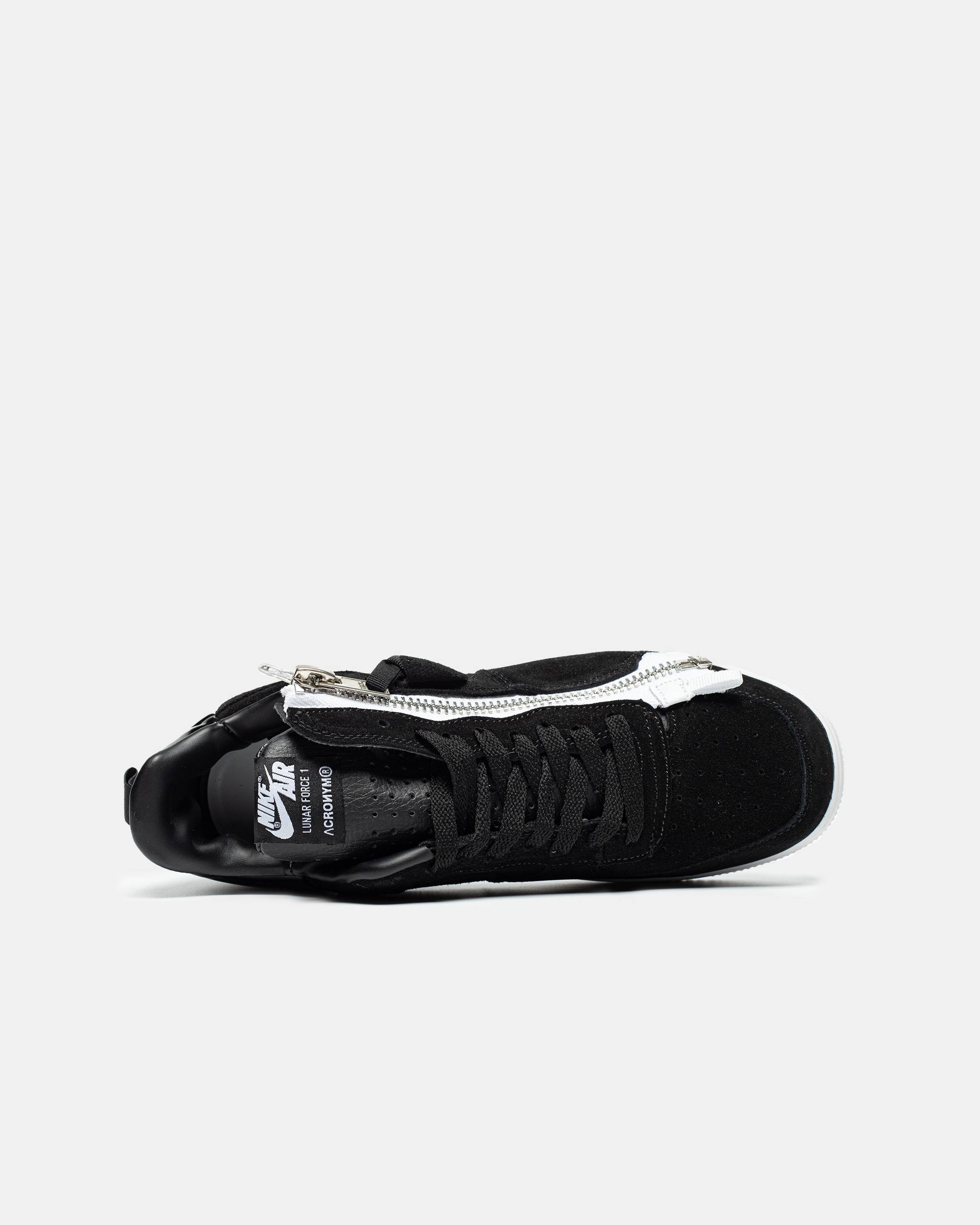 Nike Lunar Force 1 x Acronym Black — це сміливі кросівки з технічним дизайном, створені в колаборації з Acronym, які вирізняються блискавкою збоку та поєднанням інноваційних матеріалів у чорному кольорі.