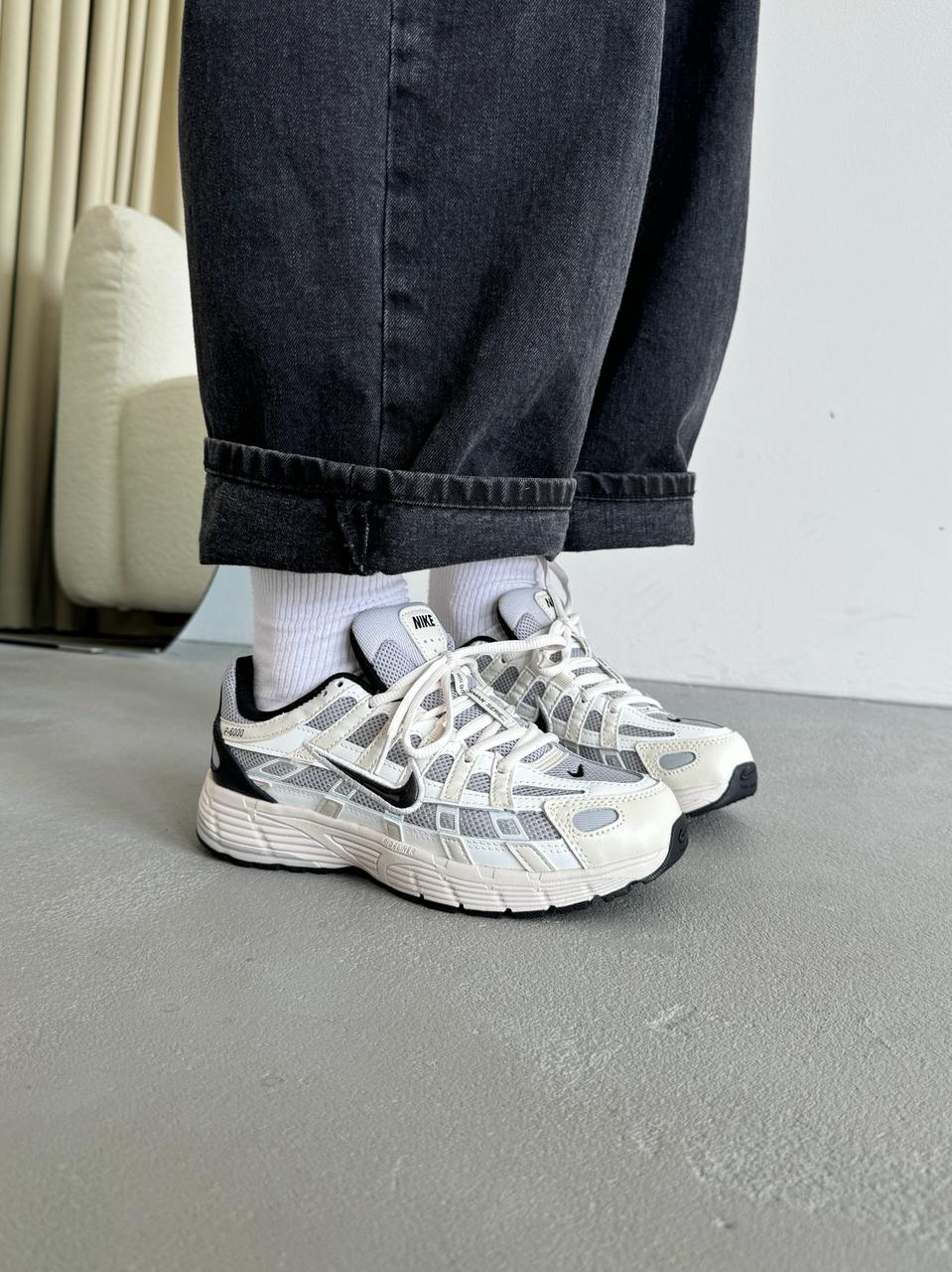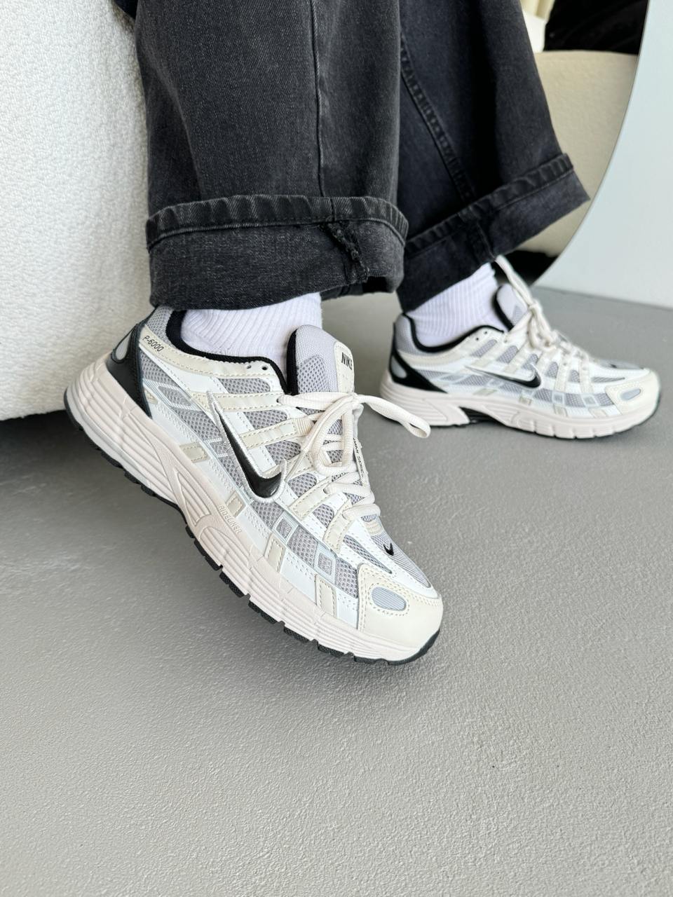 Nike P-6000 White Beige Black — це поєднання ретро-бігового силуету, багатошарової конструкції та збалансованої нейтральної палітри. Поєднання білого, бежевого та чорного створює універсальний, трохи вінтажний образ із сучасним міським характером, а фірмовий стиль Nike додає моделі впізнаваності та динаміки.