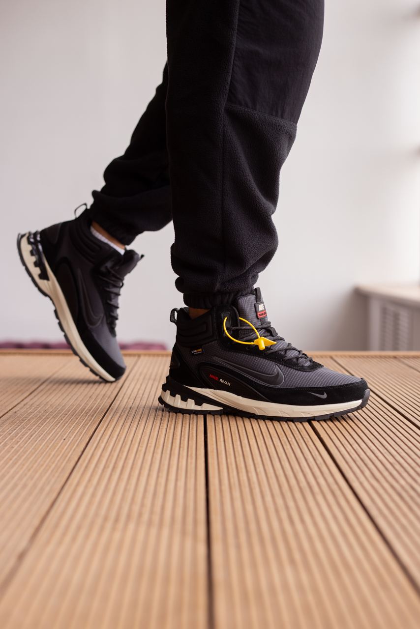 Nike Rivah High White/Dark Grey Gore-Tex Fur — стильні зимові кросівки з верхом із замші та текстилю, мембраною GORE‑TEX, хутровою підкладкою та міцною підошвою — для надійного захисту від холоду й вологи