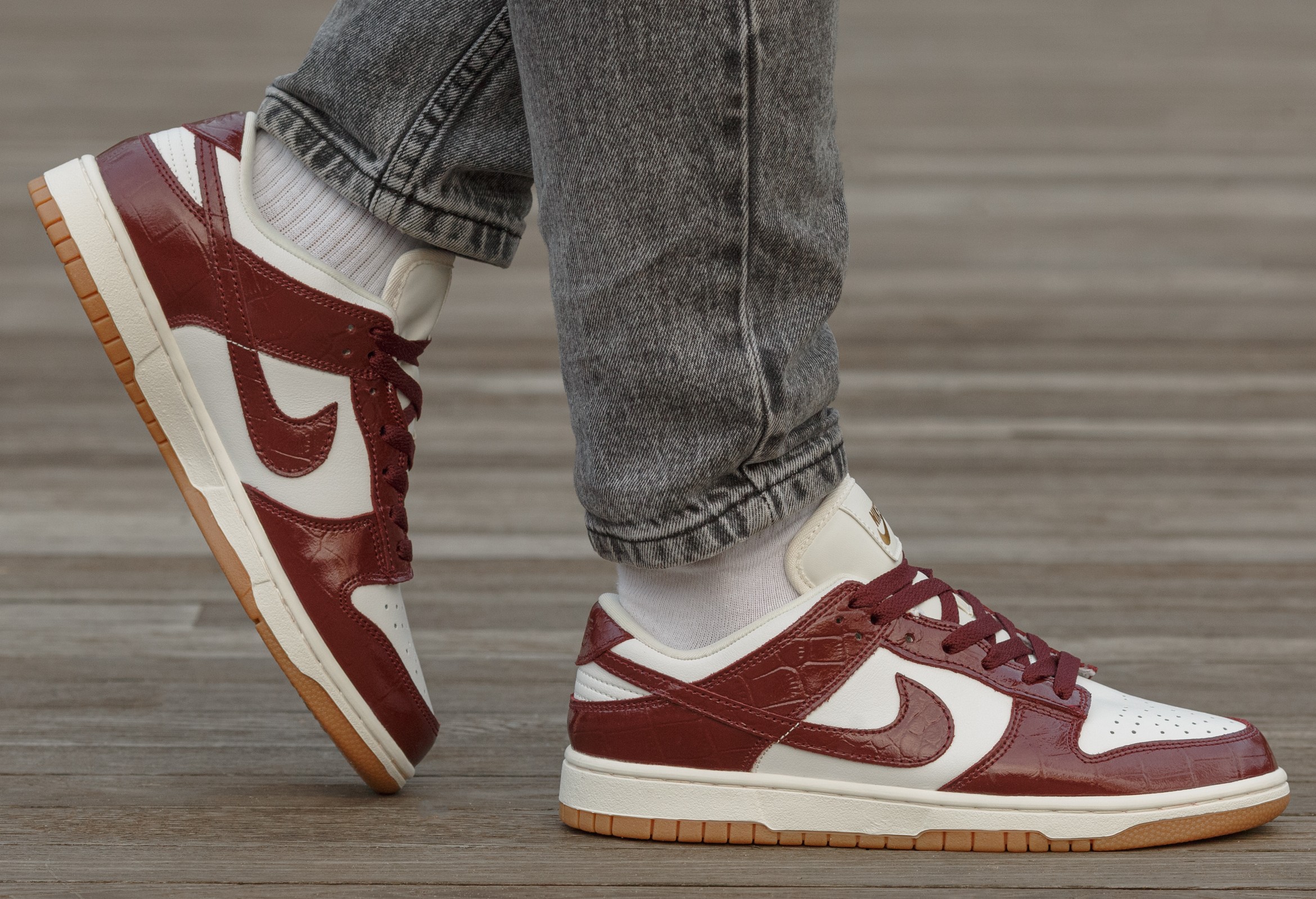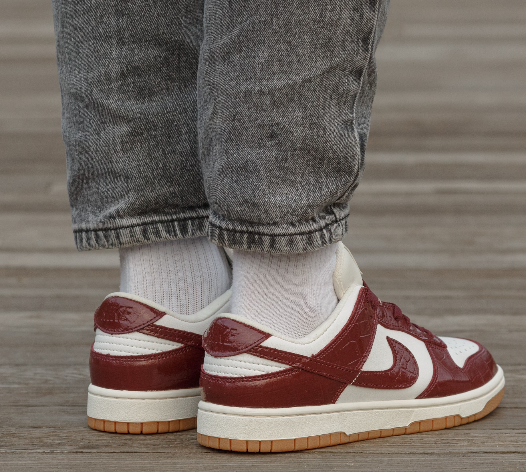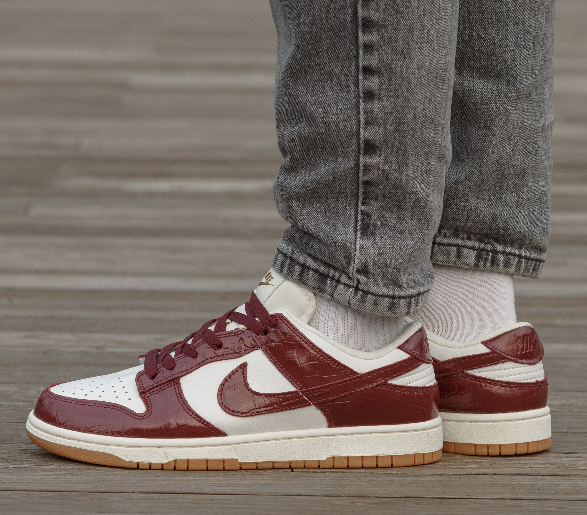 Nike SB Dunk Low “Burgundy Croc” — це стильна модель, що поєднує бордовий колір з текстурою під крокодилячу шкіру, створюючи ефектний вигляд для щоденного носіння.