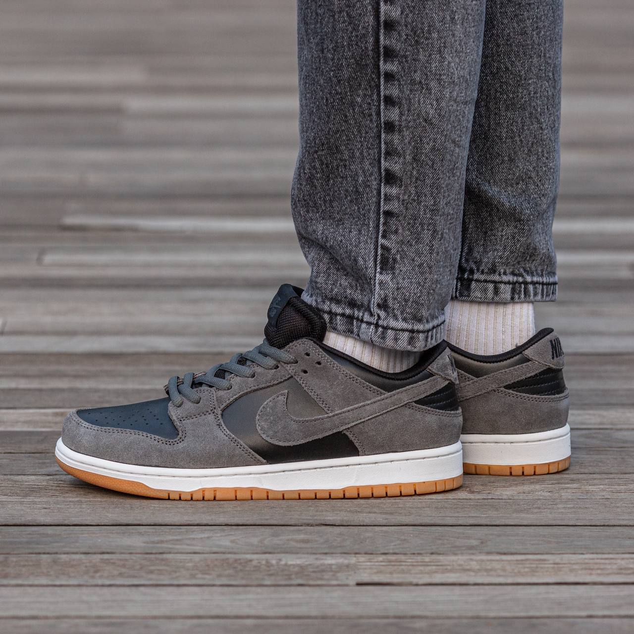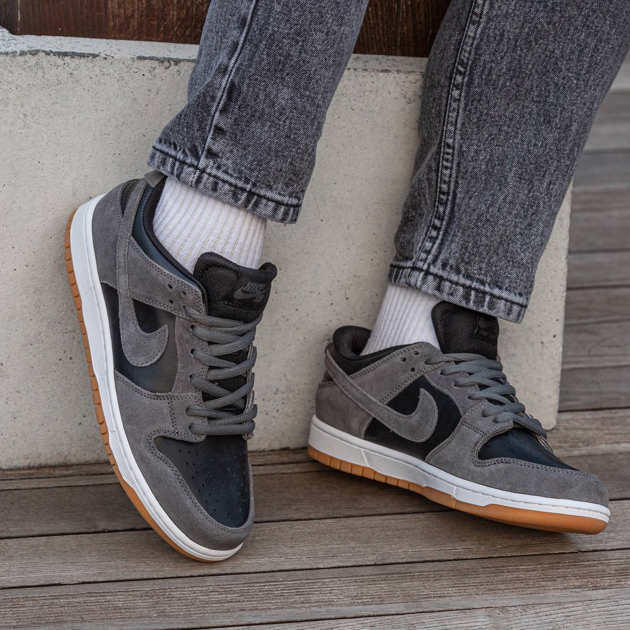 Nike SB Dunk Low Black Grey — це стильні скейтбордичні кросівки з поєднанням чорного та сірого кольорів, міцним верхом і комфортною амортизацією для щоденного носіння та катання.