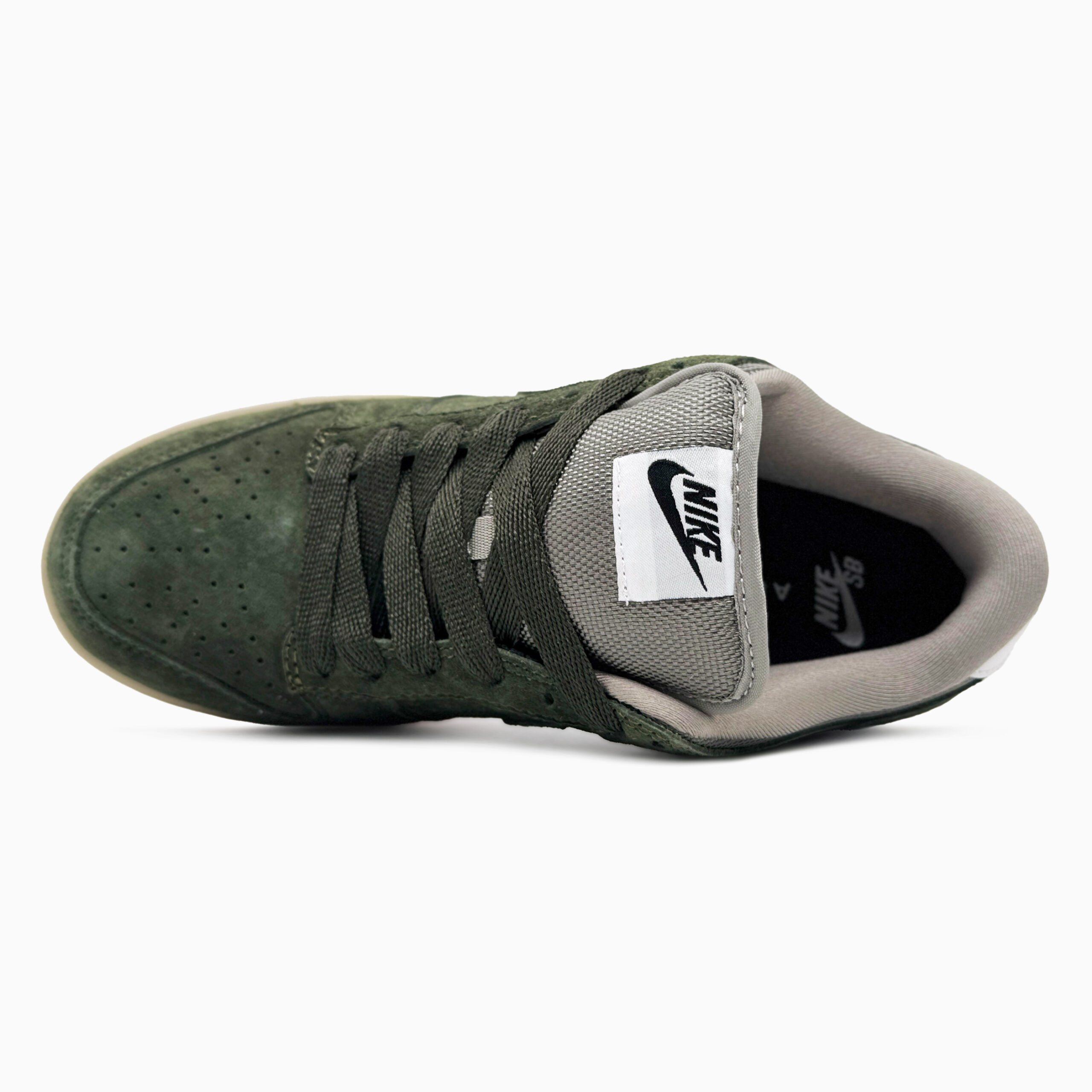 Nike SB Dunk Low Pro B Sequoia — це низькопрофільні скейтбордичні кросівки в насиченому темно-зеленому відтінку з замшевим верхом, м’яким язиком і амортизаційною підошвою для комфорту та контролю на дошці.