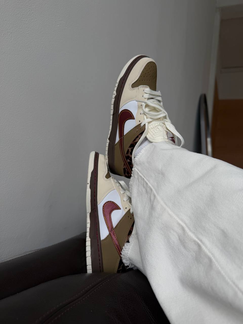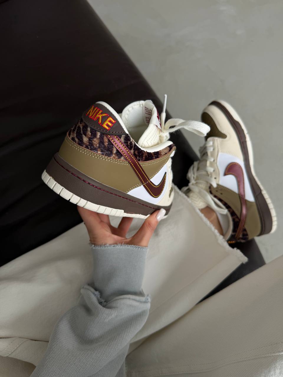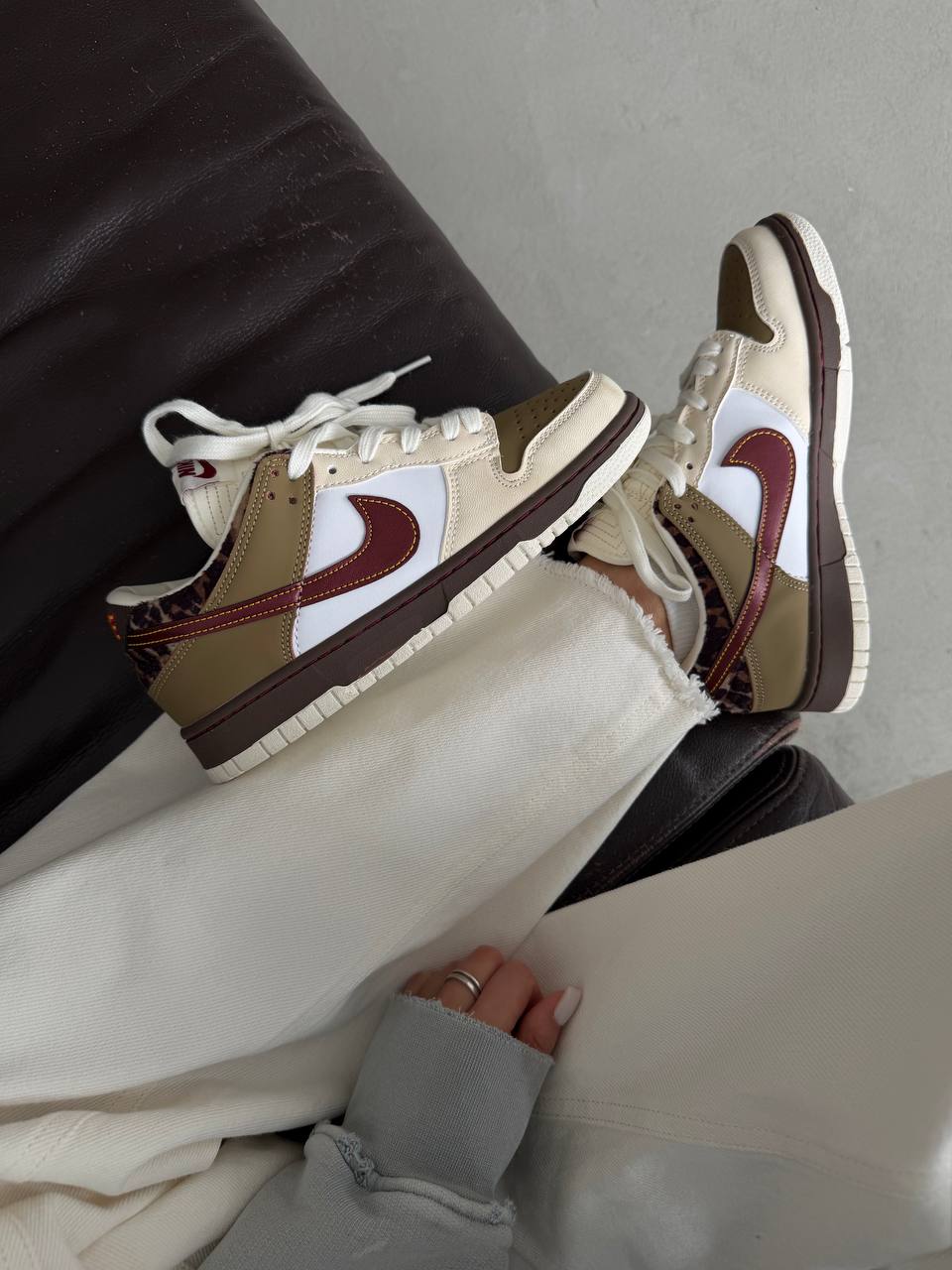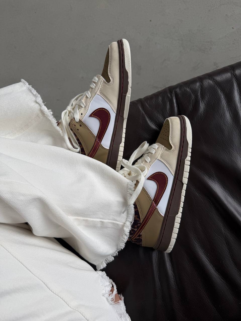 Nike SB Dunk Low White Cheetah — це стильні скейтборд-кросівки з білою шкіряною основою та акцентами з чітким «cheetah»-принтом, що поєднують комфорт, зносостійкість і яскравий дизайн.