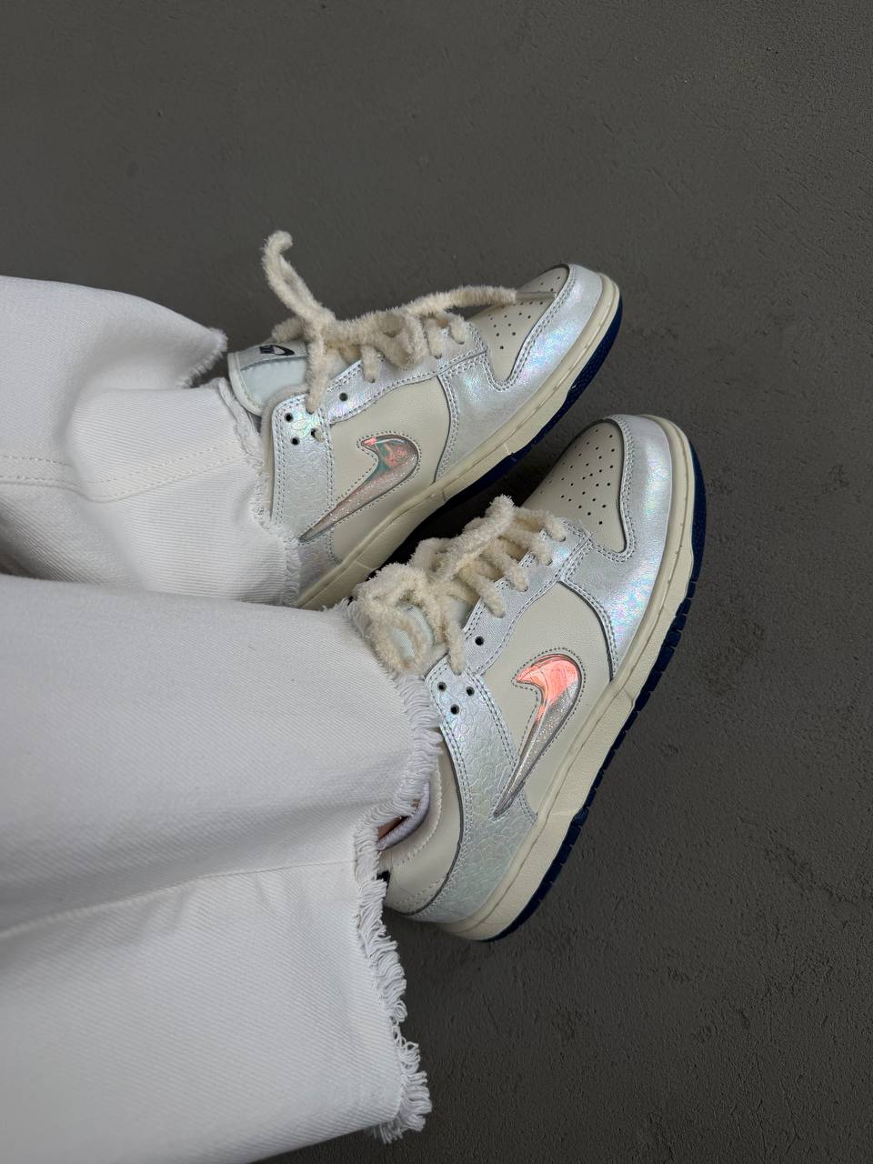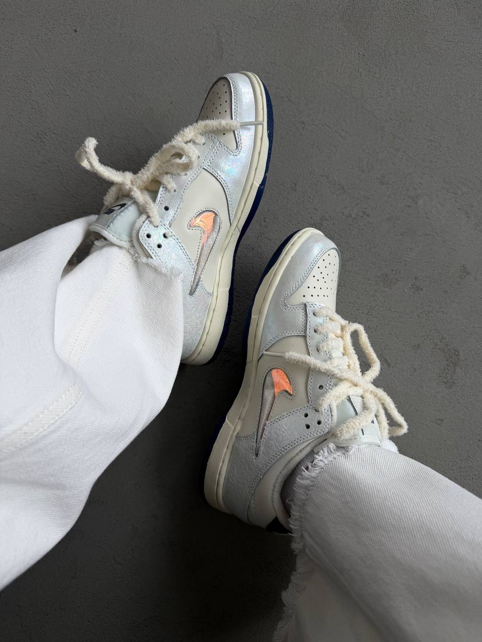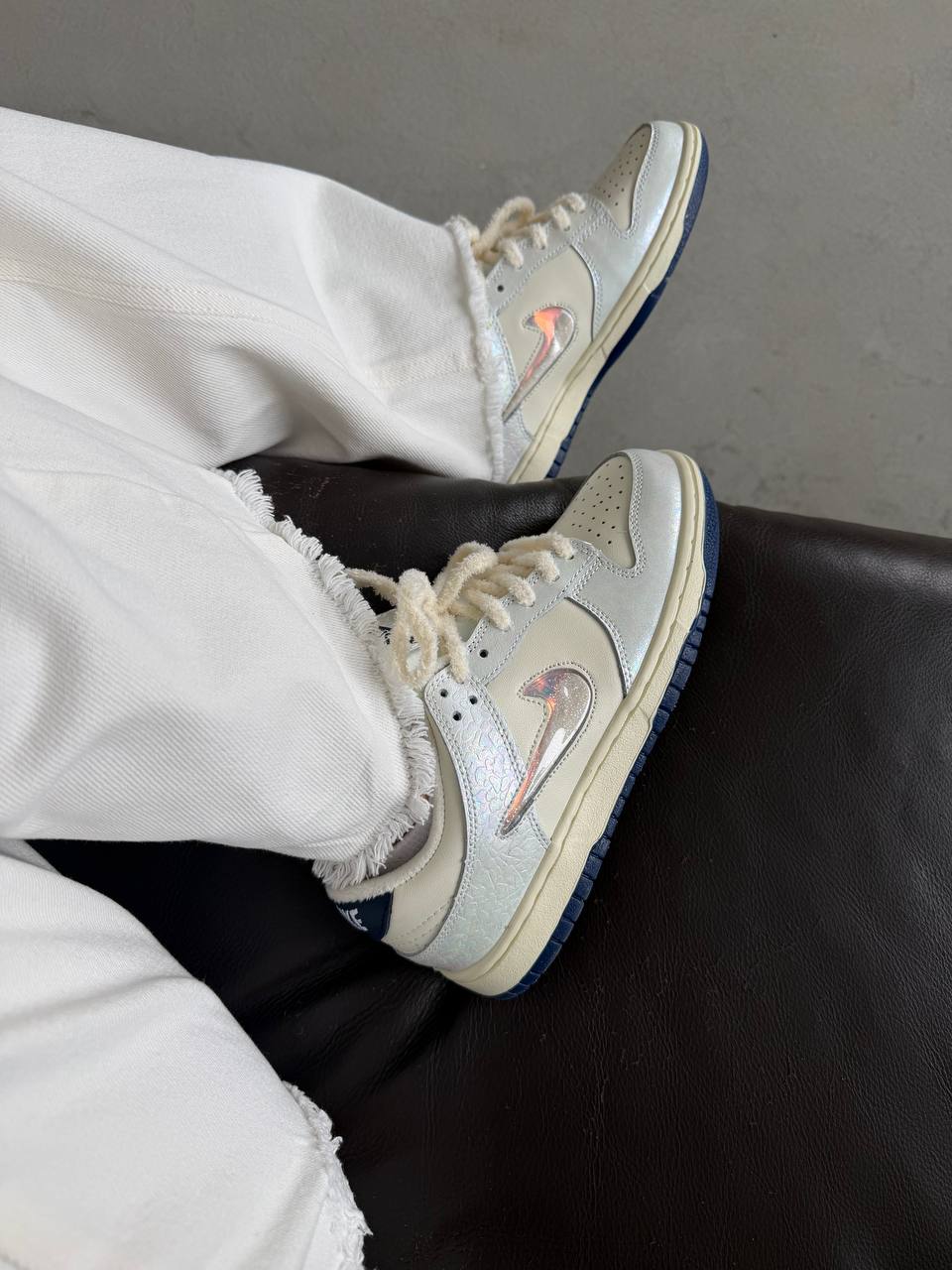Nike SB Dunk Pearl Multicolor Midnight Navy — це скейт-кросівки з багатобарвним дизайном і темно-синім акцентом, поєднуючи культовий силует Dunk з яскравим сучасним стилем.