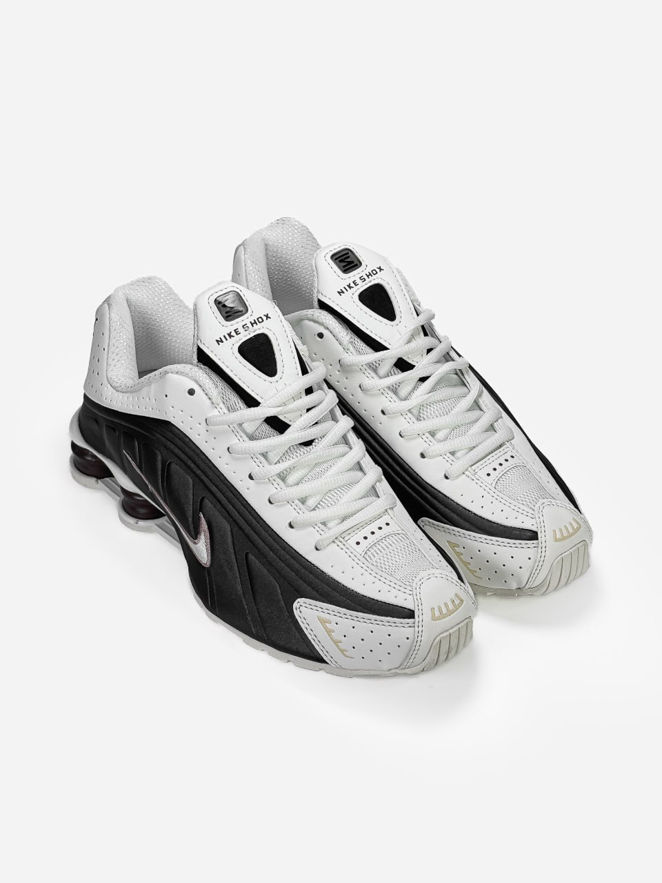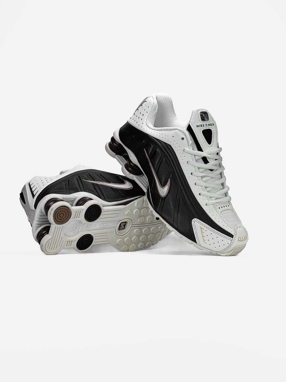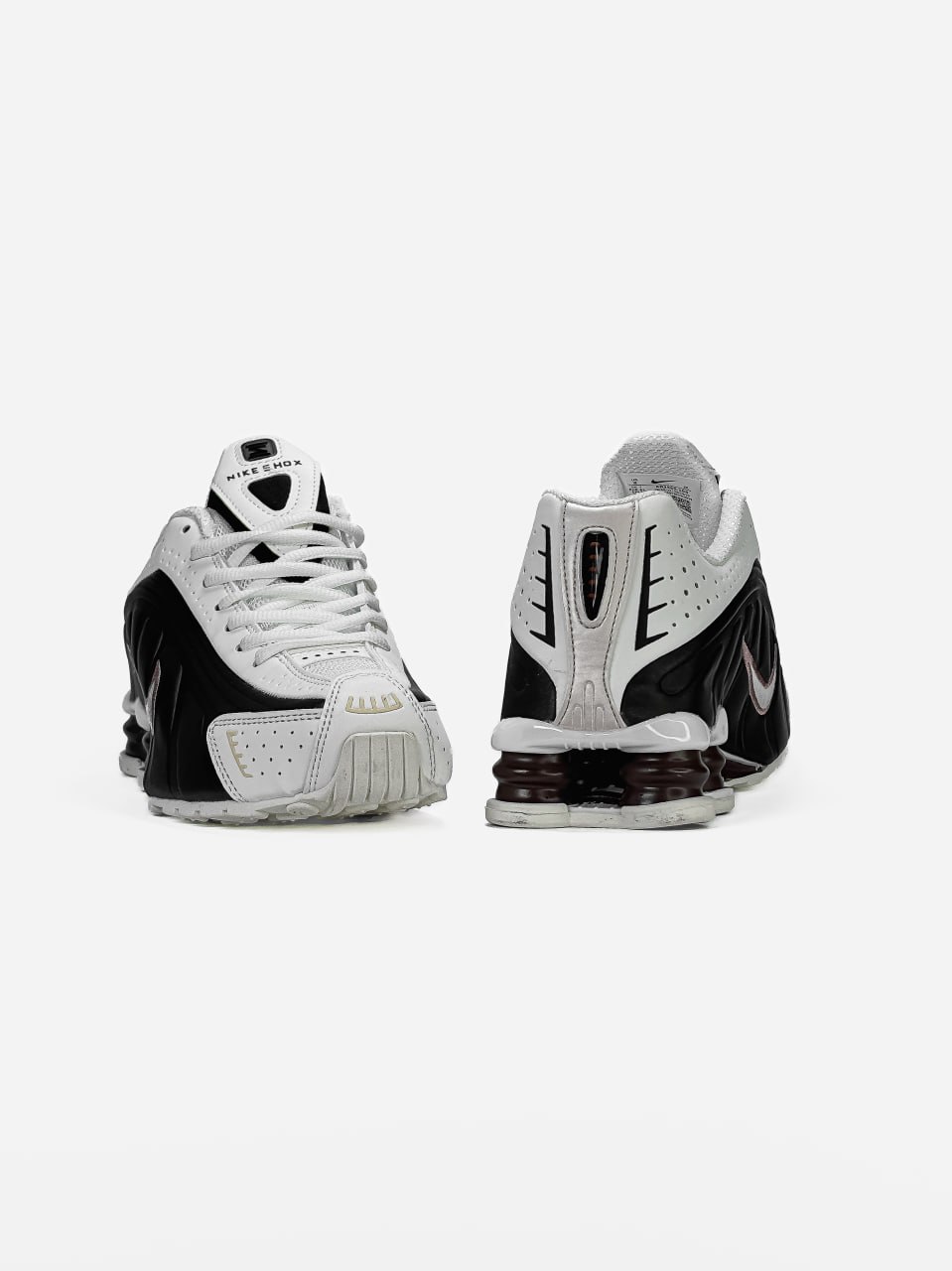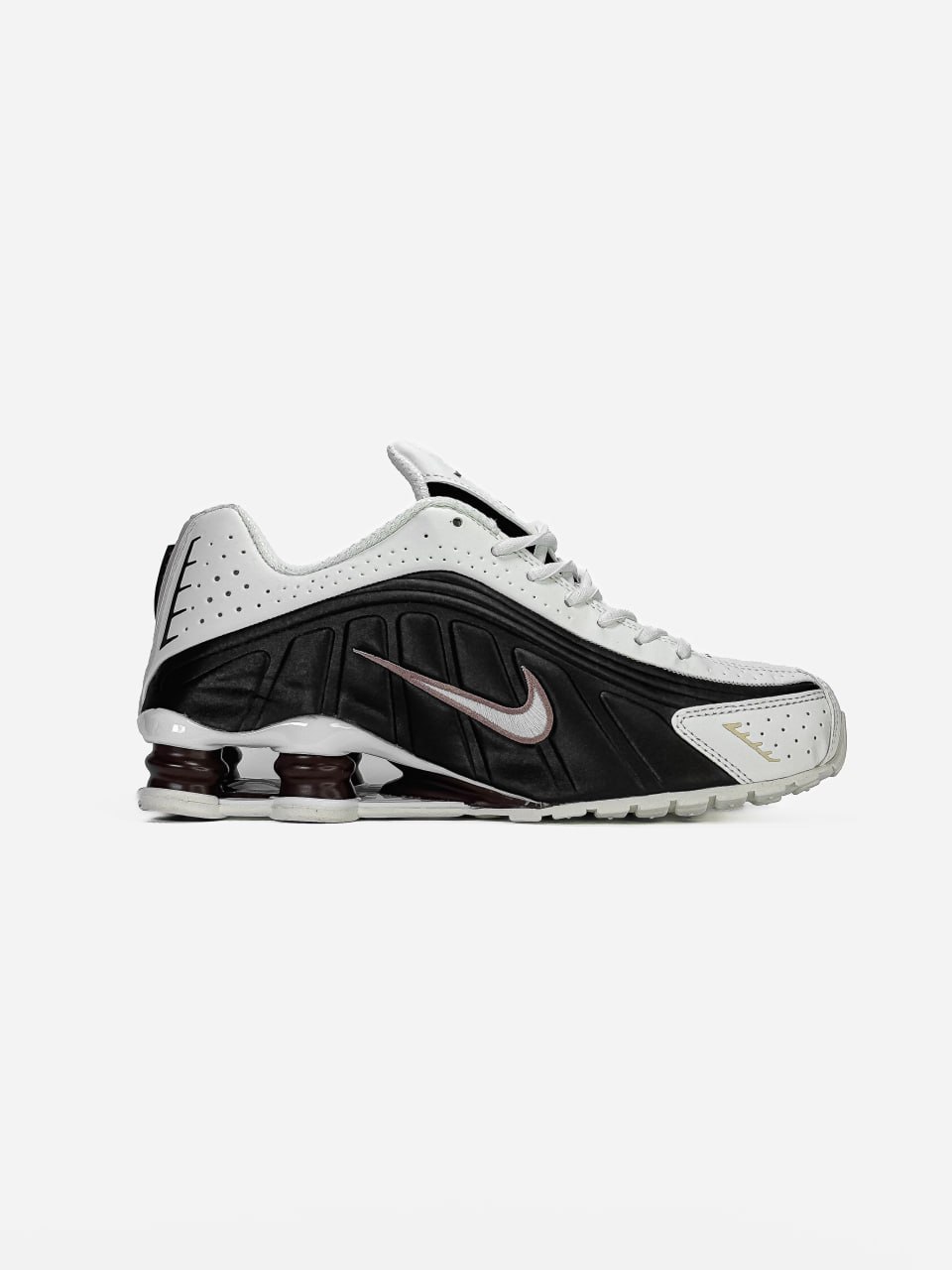 Nike Shox R4 Sail Black Fauna Brown — це стильні кросівки з кремово-білою основою Sail, чорними шкіряними вставками та коричневими Fauna Brown акцентами на фірмових пружинних колонах Shox, що поєднують ретро-дизайн 2001 року з сучасним комфортом і амортизацією.