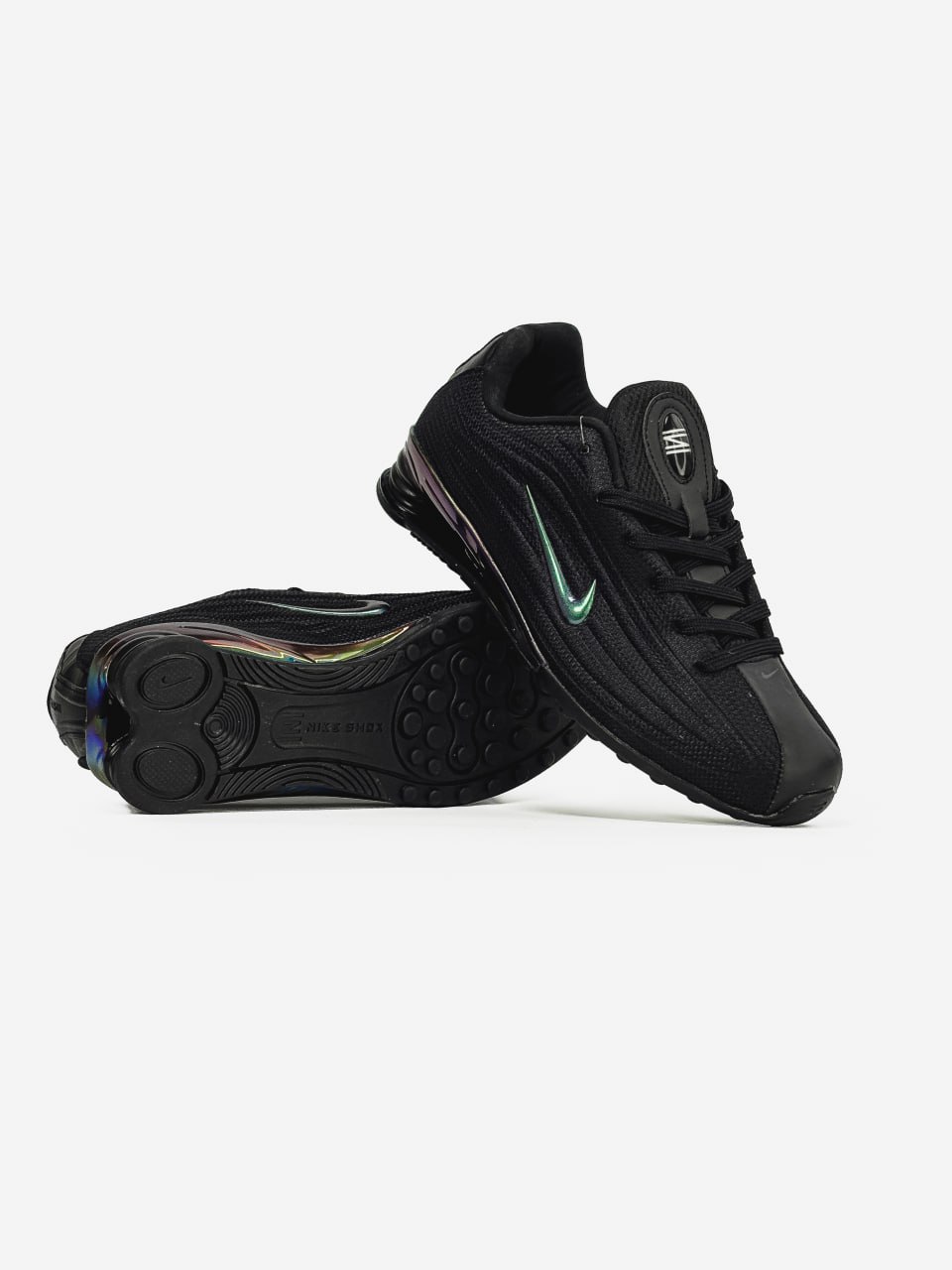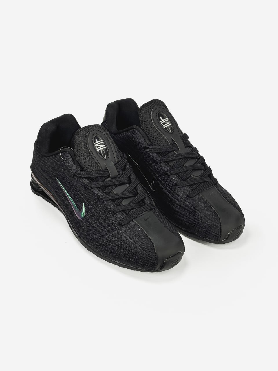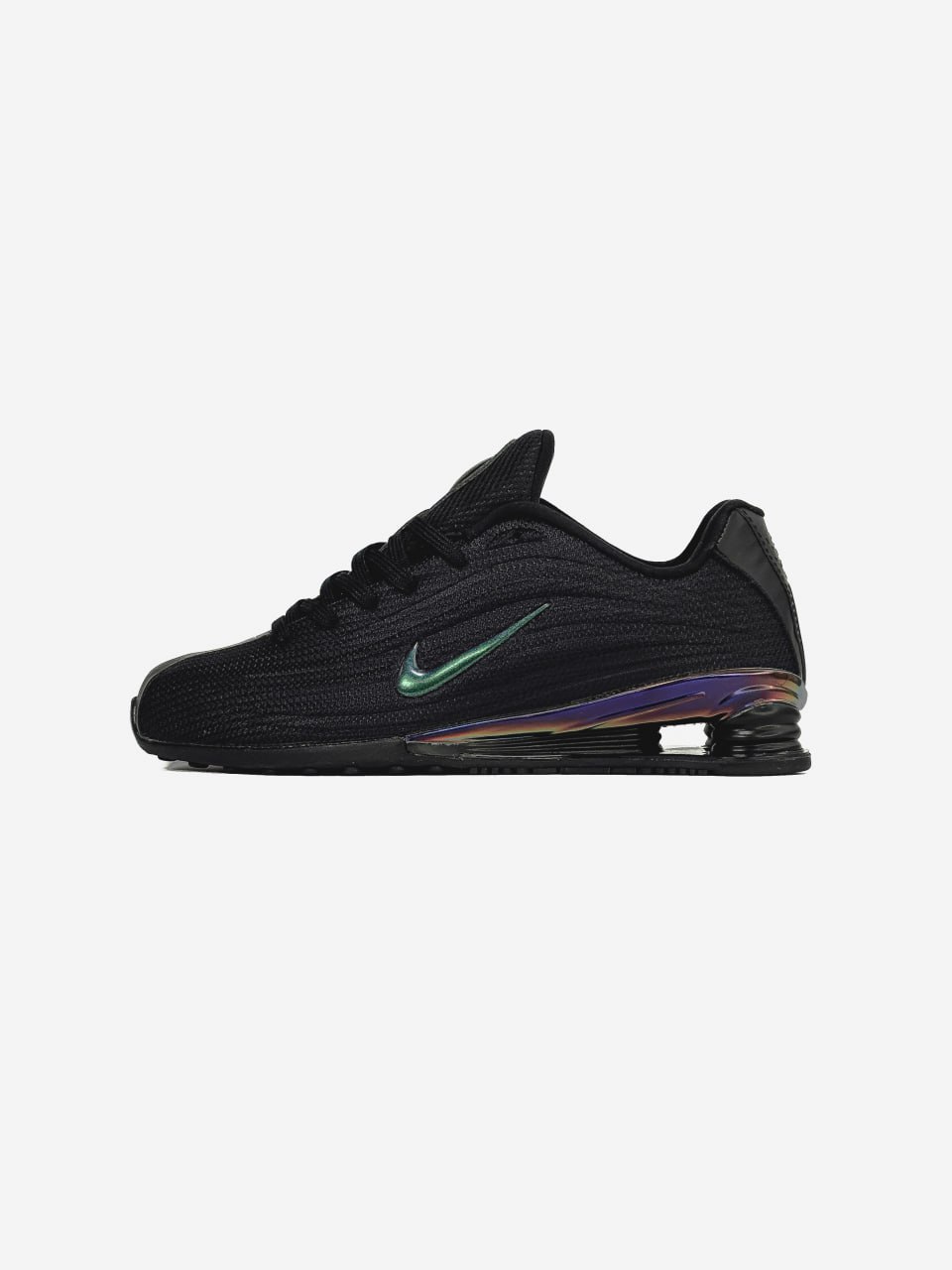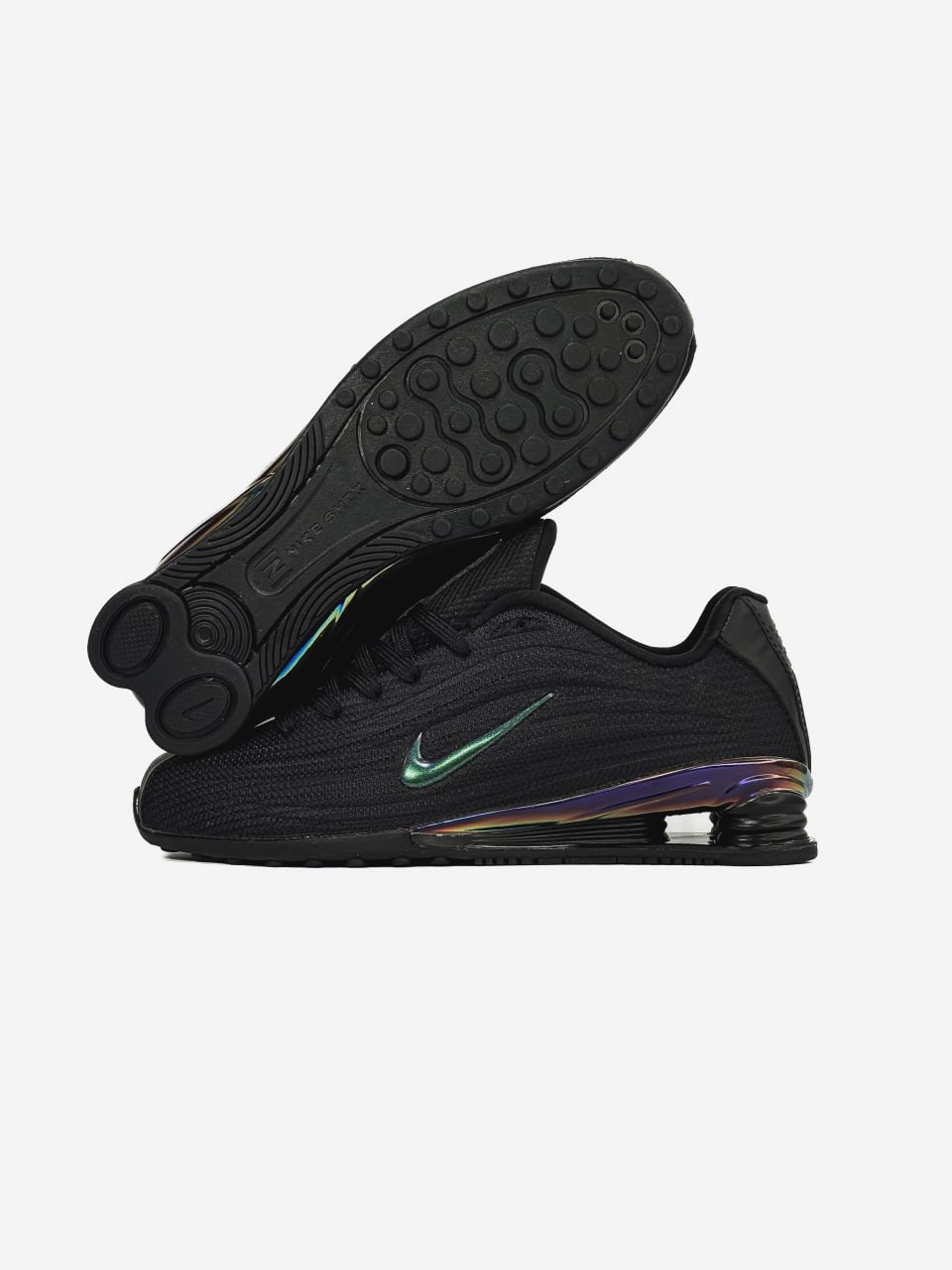 Nike Shox Z Black Iridescent — це стильні чорні кросівки з іридисцентним ефектом і характерною амортизацією Shox для комфорту та динамічного вигляду.
