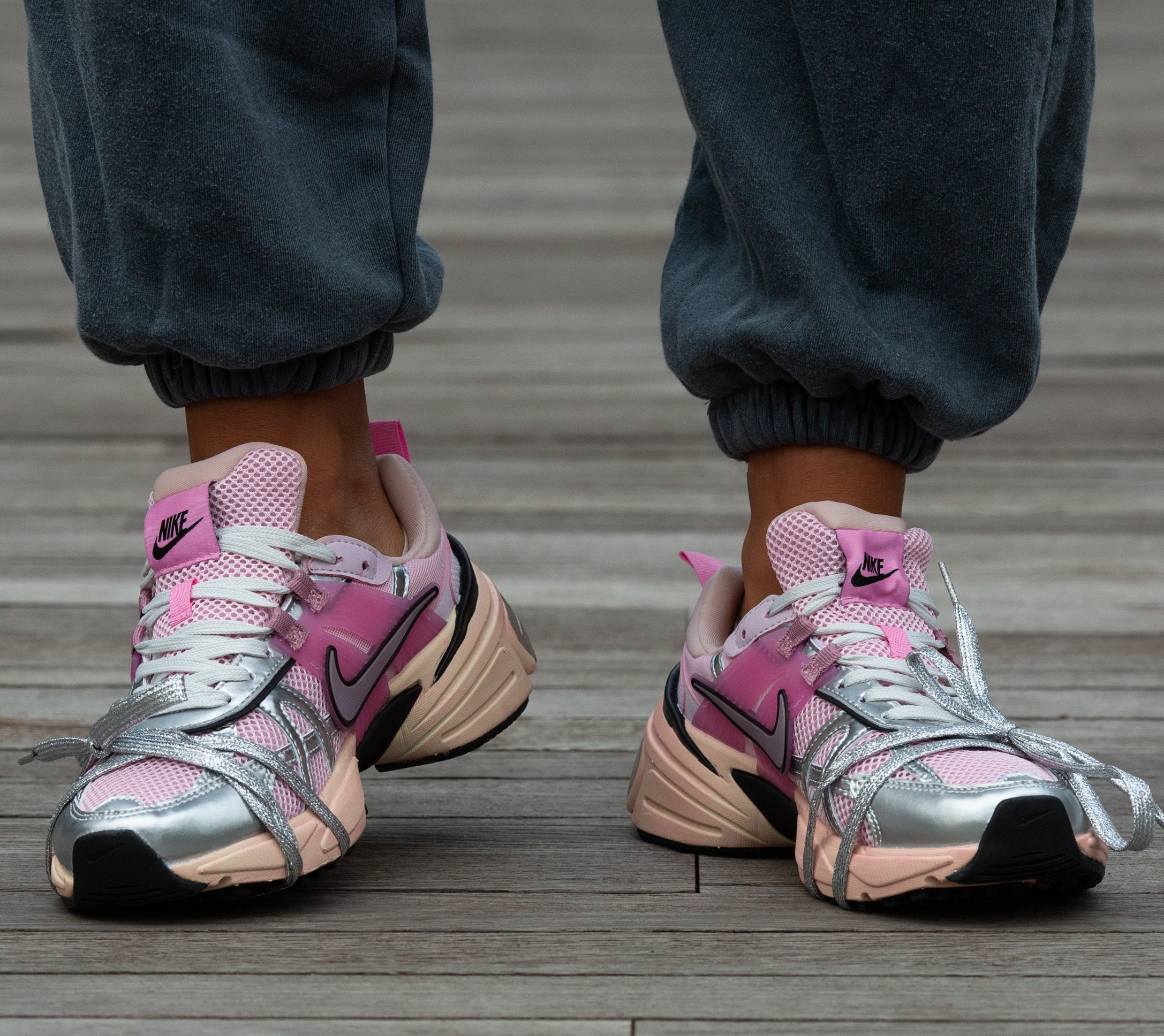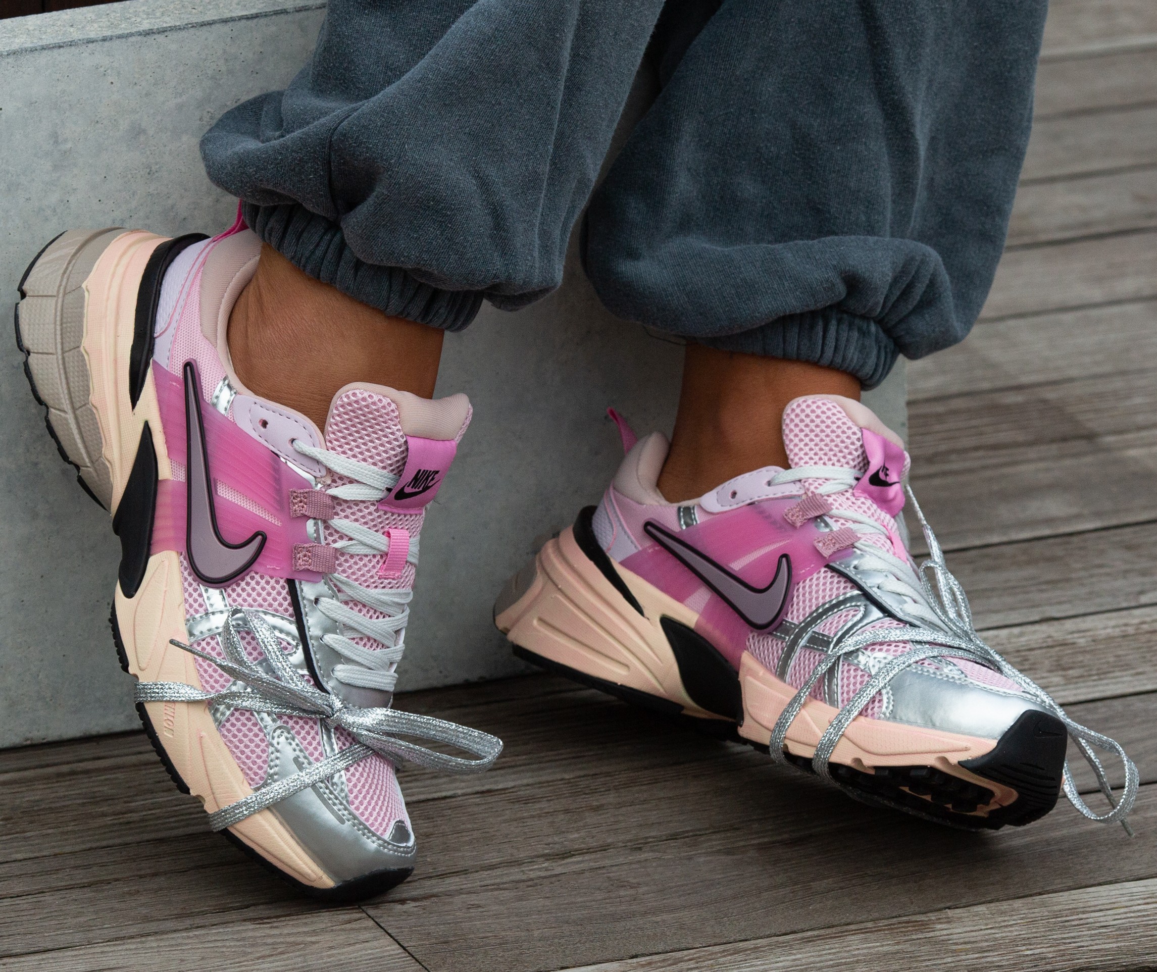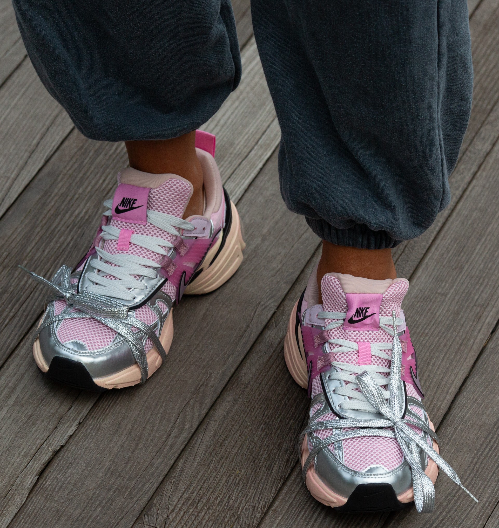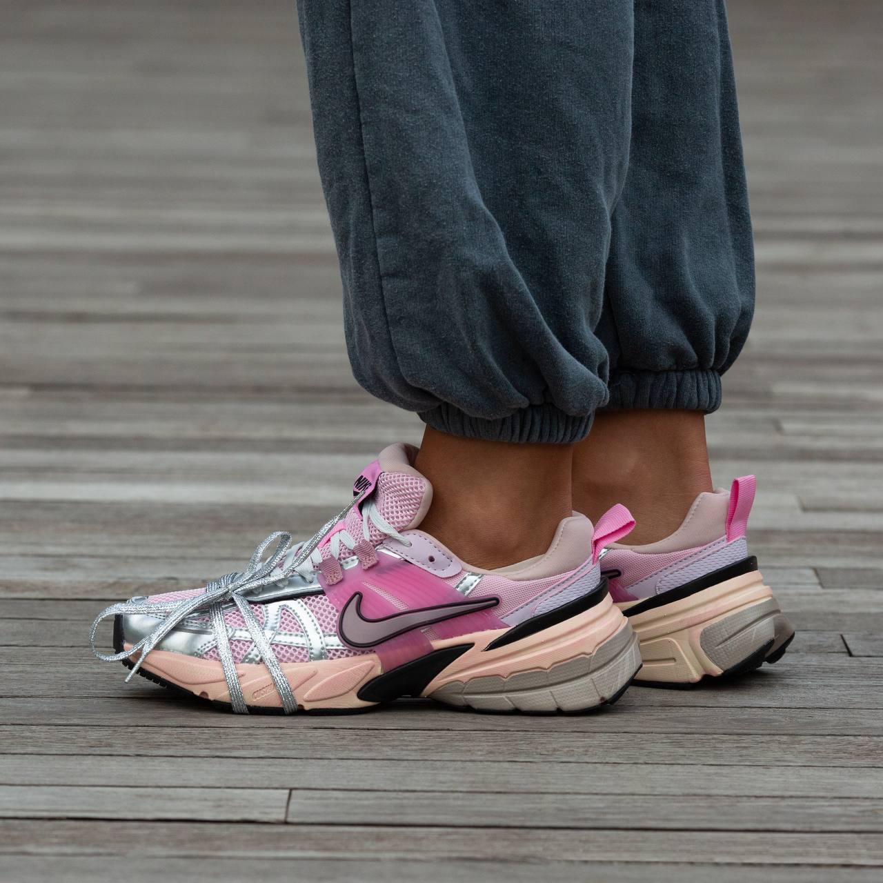 Nike V2K Runtekk Pink Silver — це поєднання сучасного бігового силуету, яскравих відтінків і щоденного комфорту. Рожеві акценти в поєднанні з металевими сріблястими деталями створюють стильний, динамічний образ, який виглядає свіжо та привертає увагу, а фірмовий дизайн V2K підкреслює технологічність і актуальний характер моделі.
