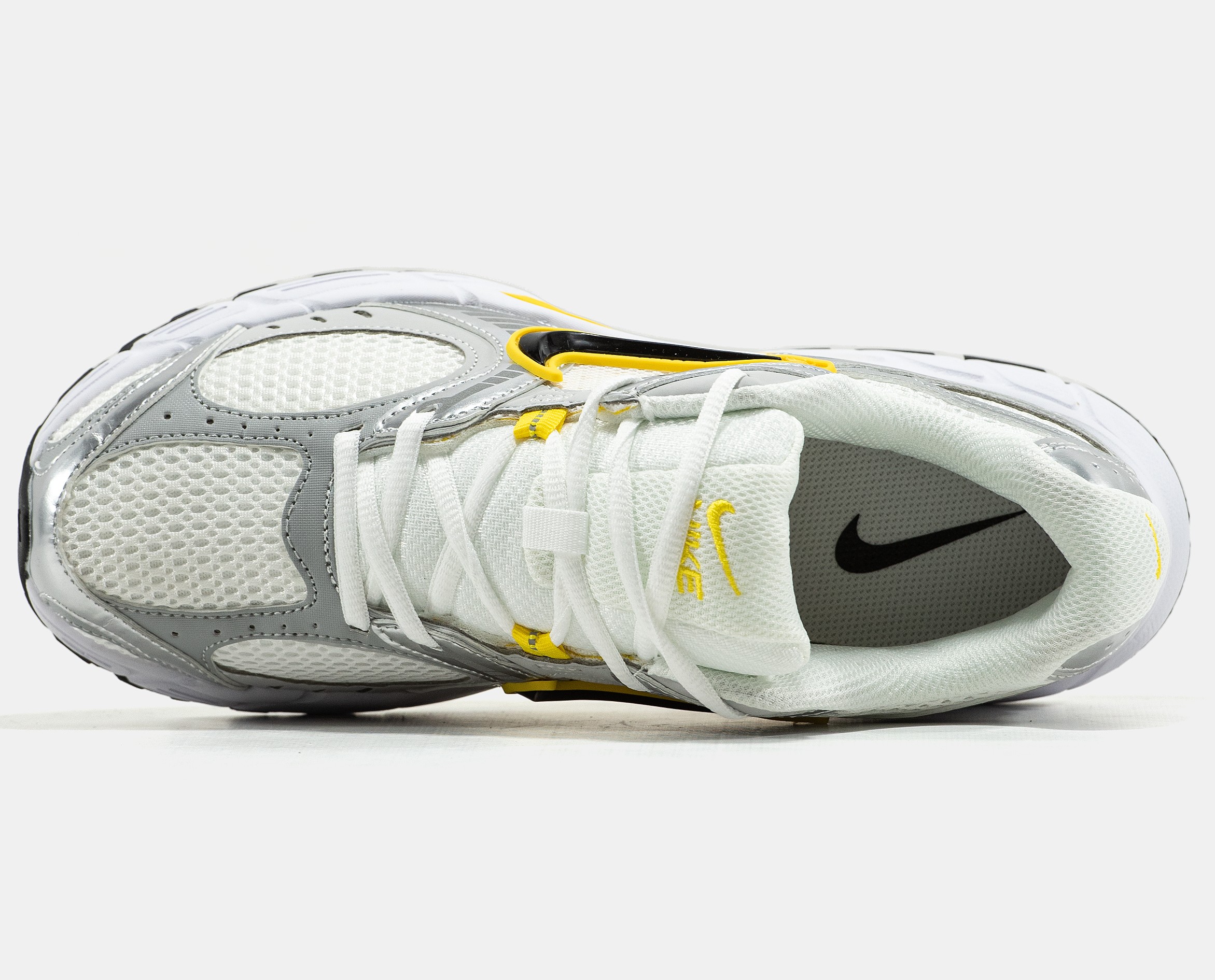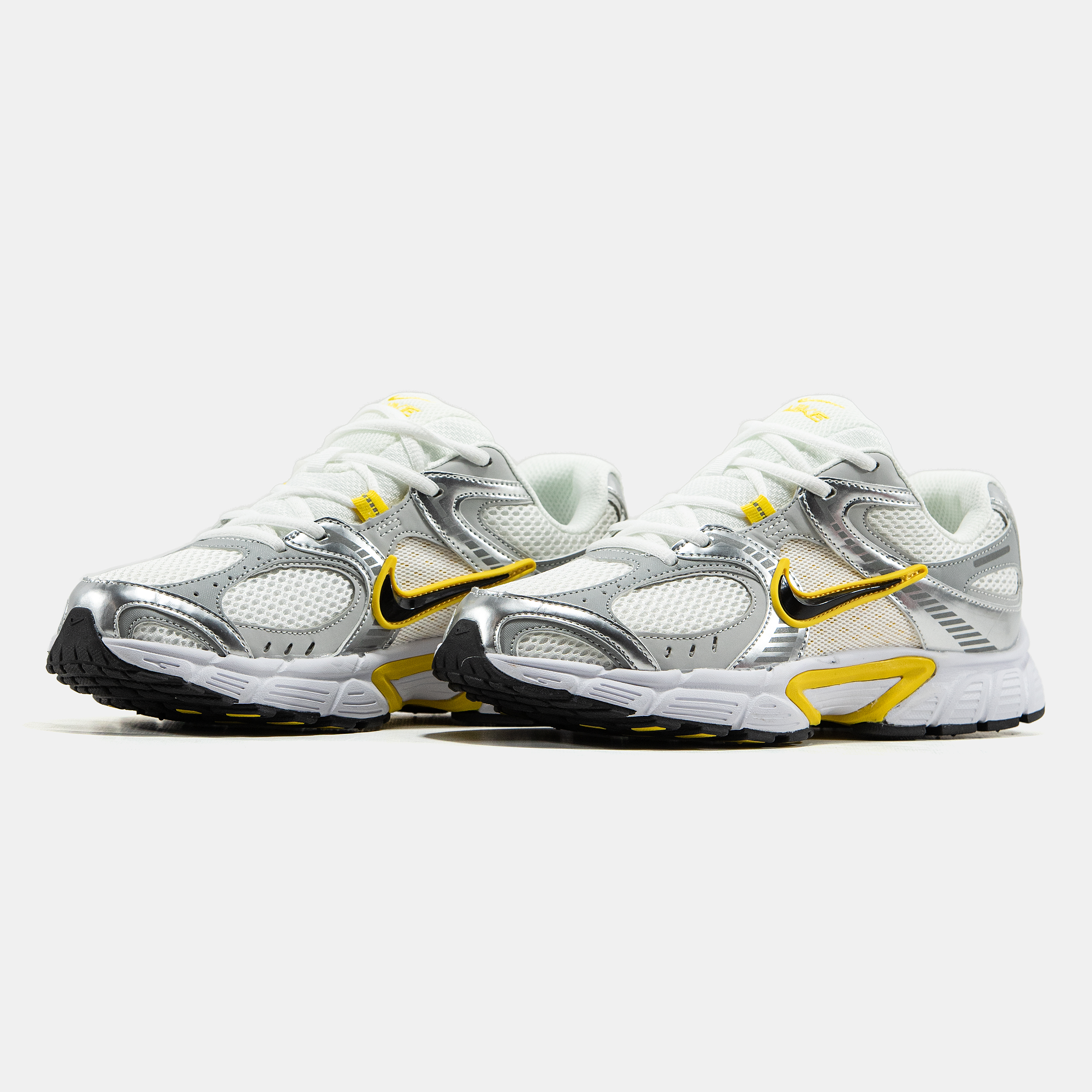 Nike V5 RNR — це легкі кросівки в ретро-дизайні з сріблясто-жовтим акцентом, створені для комфорту та щоденного стилю.
