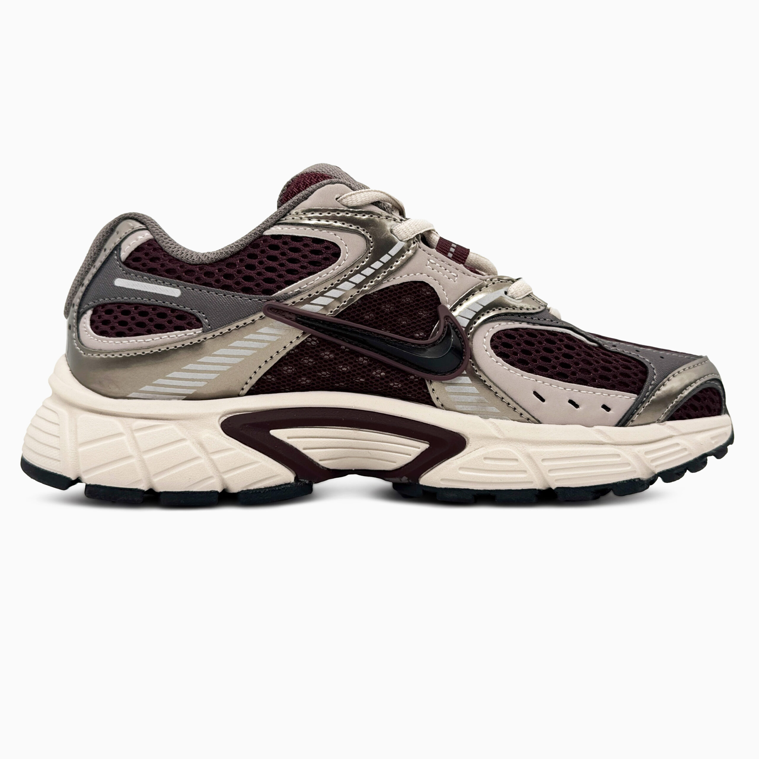 Nike V5 RNR Burgundy Grey — це стильні повсякденні кросівки з поєднанням бордового та сірого верхів, з легкою амортизацією та дизайном у ретро-риннерському стилі для комфорту й універсального носіння.