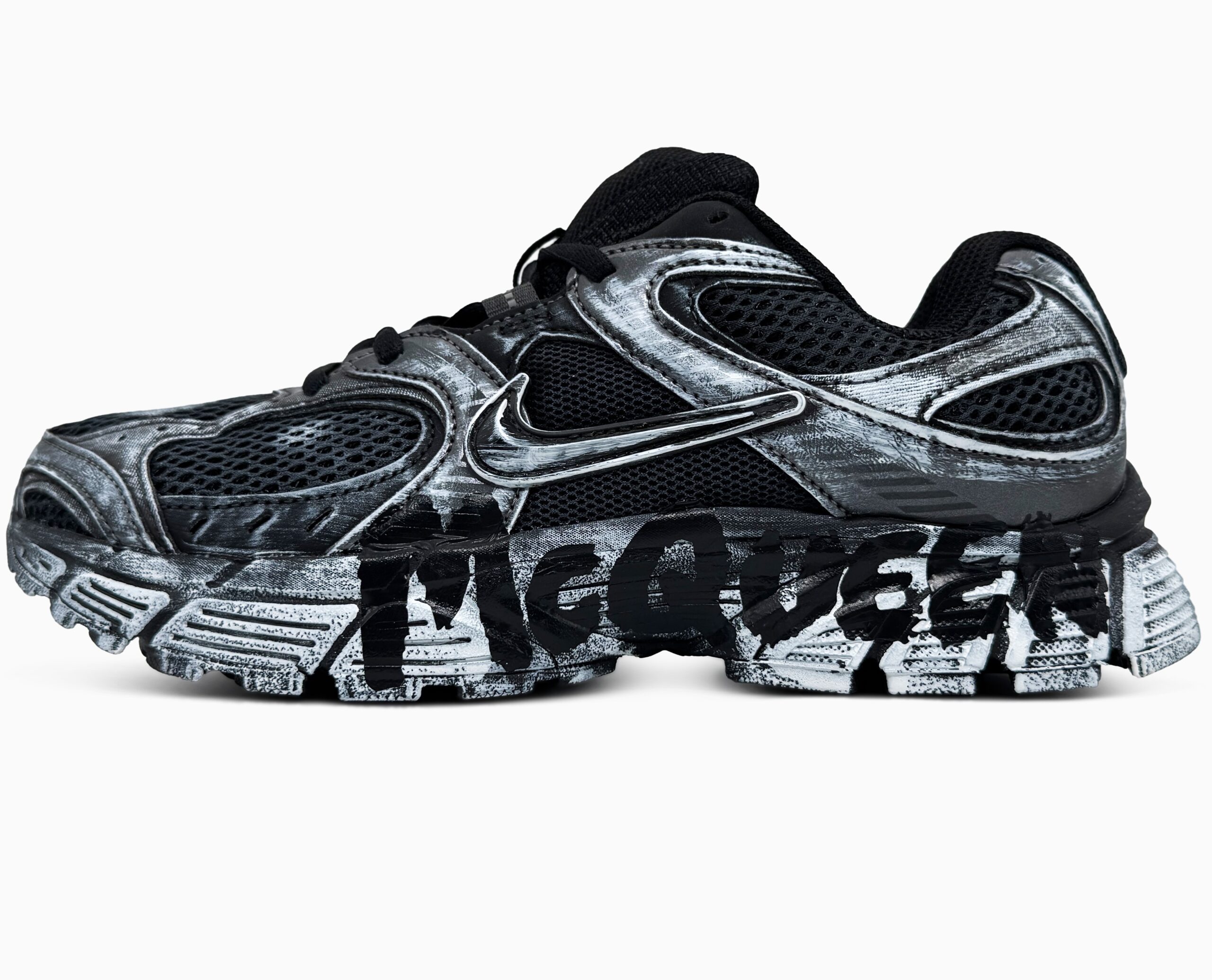 Nike V5 RNR Custom Black — це сучасні кросівки у чисто кастомному стилі з елементами Y2K-дизайну, дихаючим mesh-верхом і масивною, але легкою підошвою, що поєднують комфорт для щоденного носіння з трендовим виглядом.