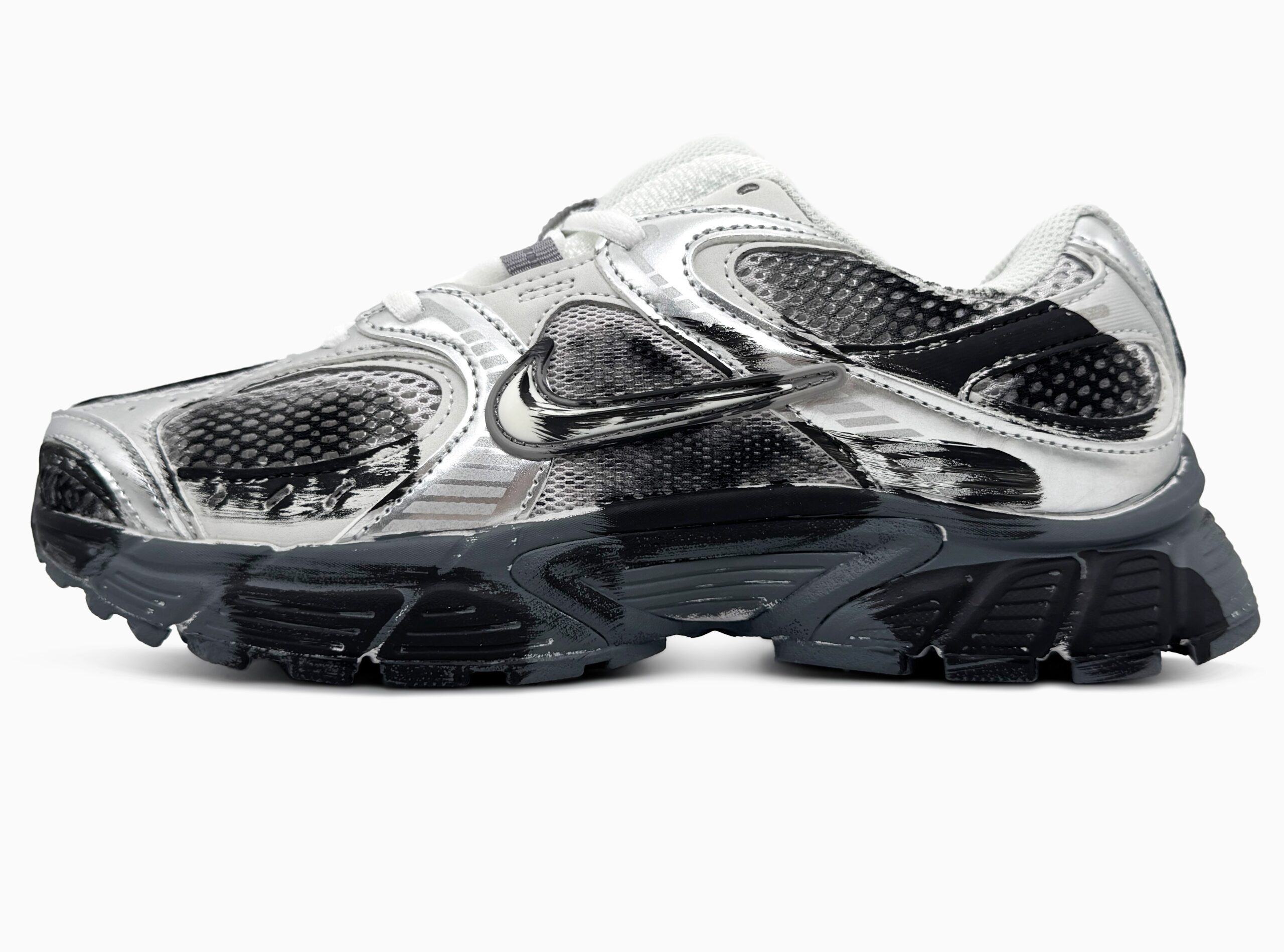 Nike V5 RNR Custom White — це сучасні кросівки у чисто кастомному стилі з елементами Y2K-дизайну, дихаючим mesh-верхом і масивною, але легкою підошвою, що поєднують комфорт для щоденного носіння з трендовим виглядом.