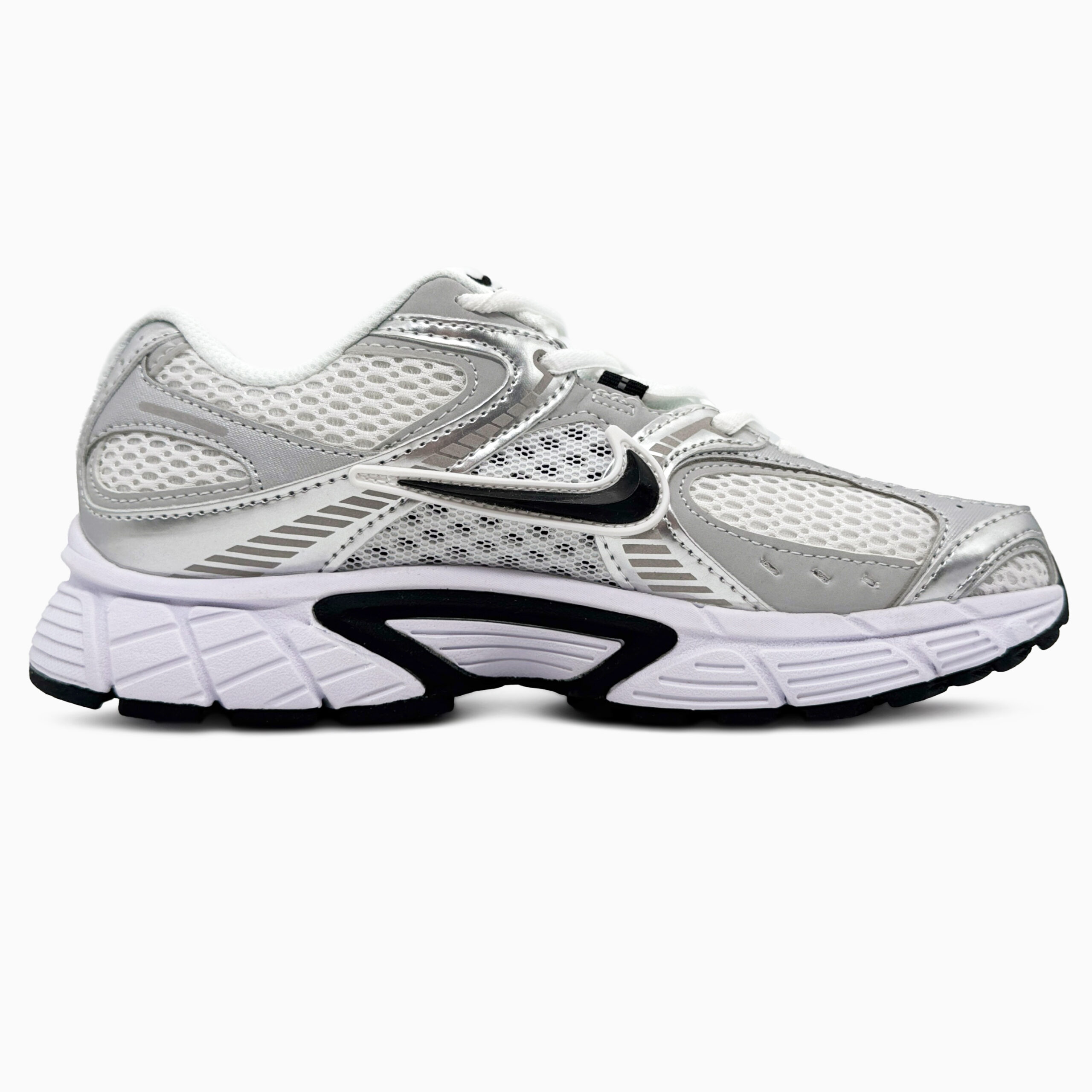 Nike V5 RNR White Silver Black — це стильні повсякденні кросівки з біло-чорним верхом і металевими сріблястими акцентами в дизайні Y2K, з легкою, амортизованою підошвою та ретро-риннерським виглядом для комфорту й універсального носіння.