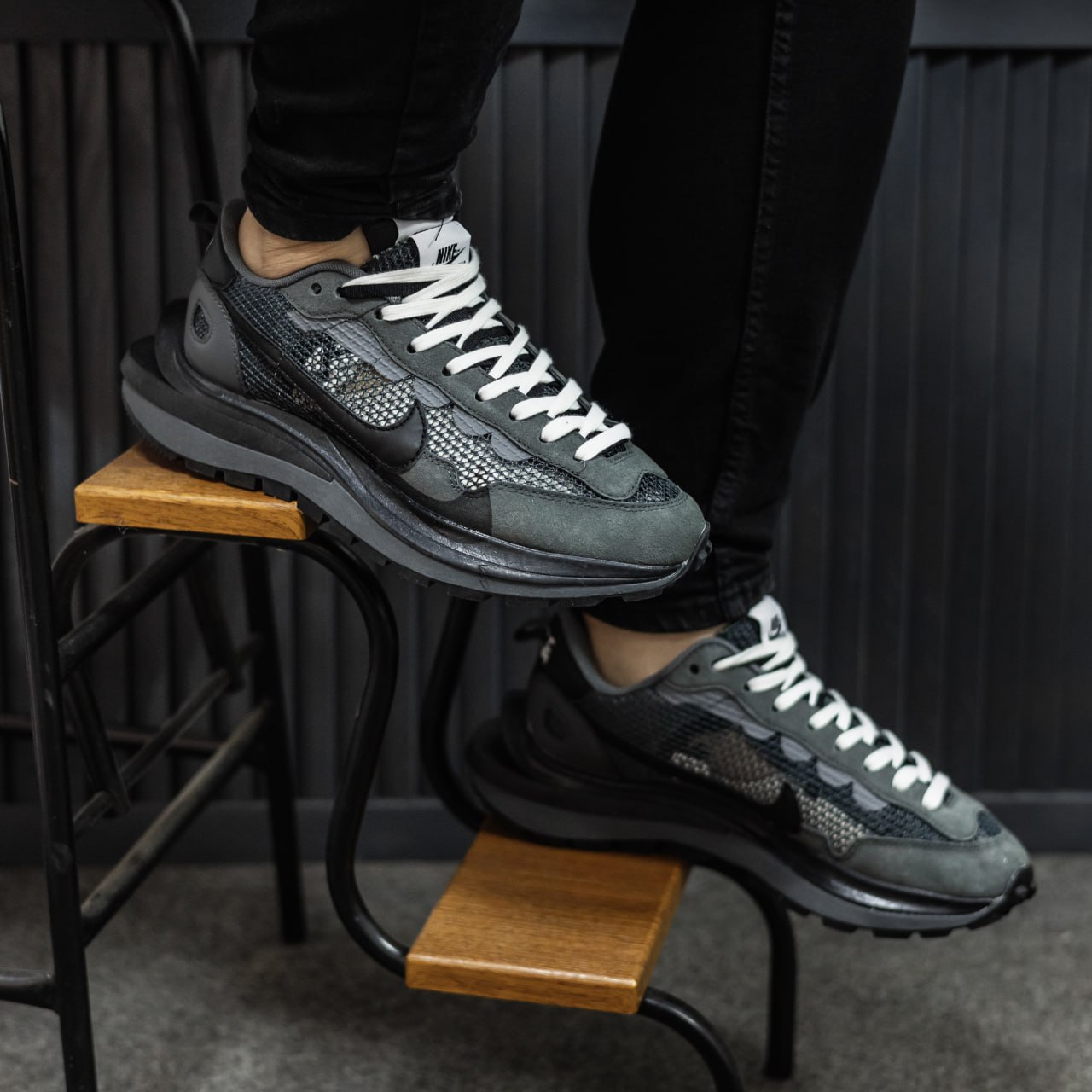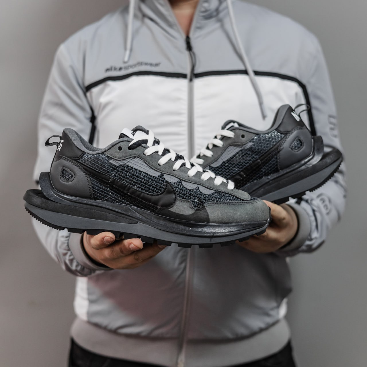 Nike VaporWaffle x Sacai — це інноваційні кросівки з фірмовою подвійною конструкцією, які поєднують бігову спадщину Nike з авангардним дизайном бренду Sacai.