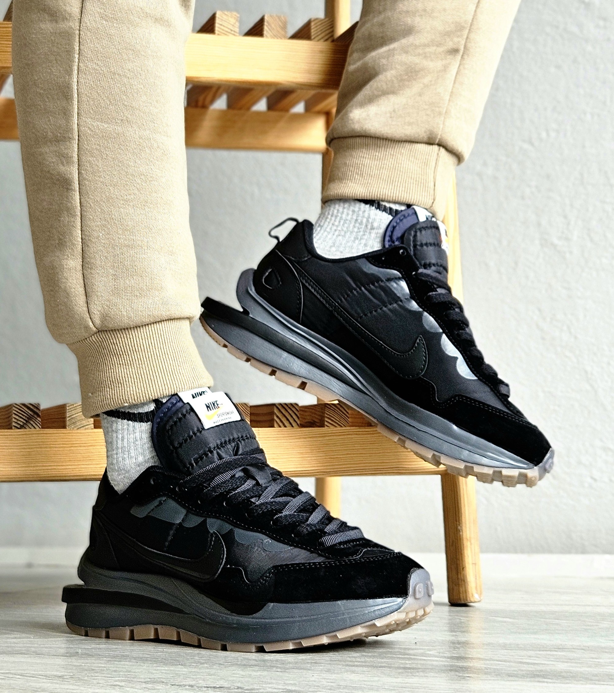 Nike VaporWaffle x Sacai — це інноваційні кросівки з фірмовою подвійною конструкцією, які поєднують бігову спадщину Nike з авангардним дизайном бренду Sacai.