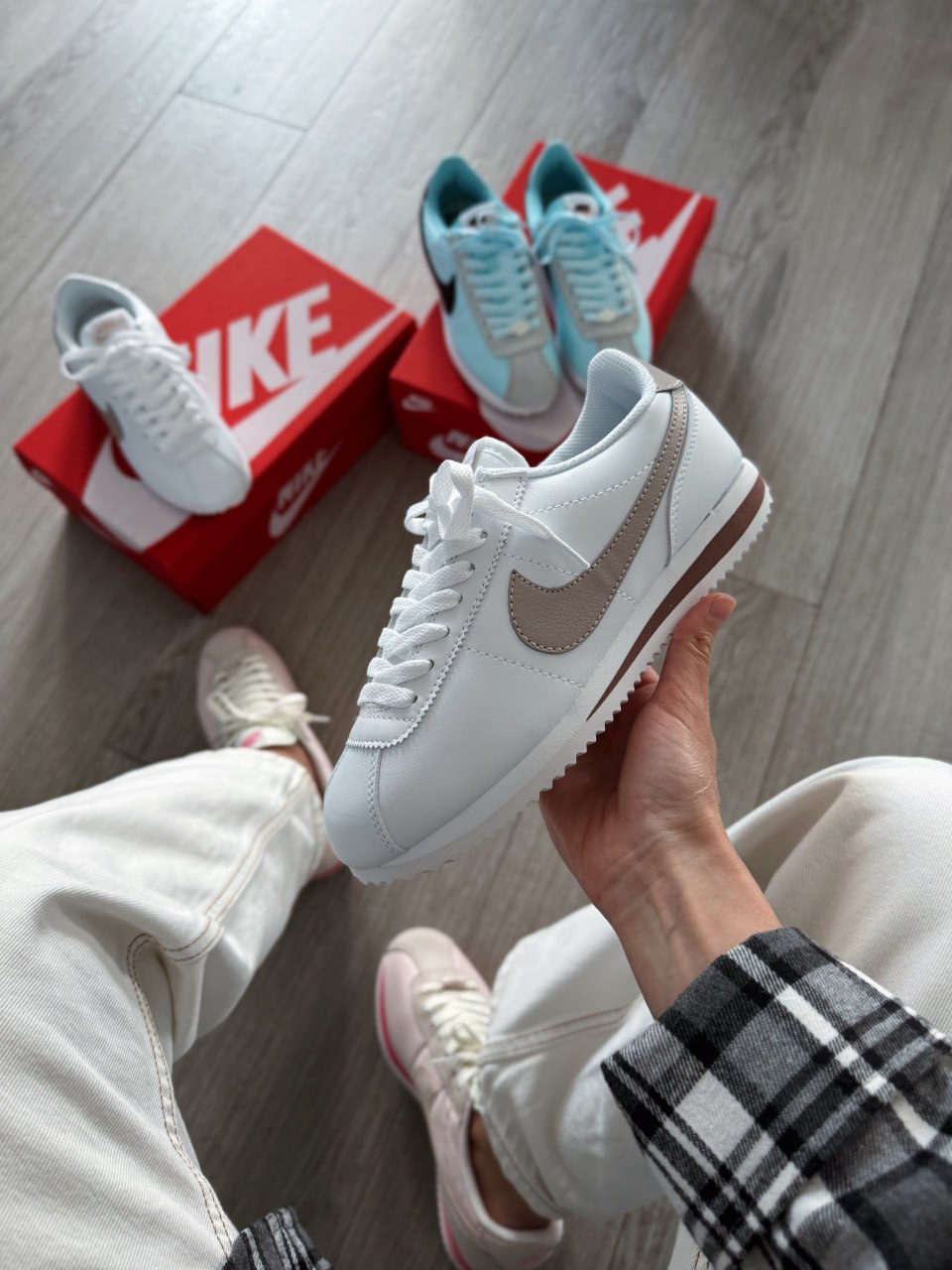 Nike WMNS Cortez White Platinum Violet (модель DN1791-105) — це жіночі кросівки, що поєднують класичний дизайн 1972 року з сучасними кольоровими акцентами: білий верх із натуральної шкіри доповнений ніжними відтінками Platinum Violet і Smokey Mauve, а також чорними деталями, що створюють елегантний і стильний вигляд.