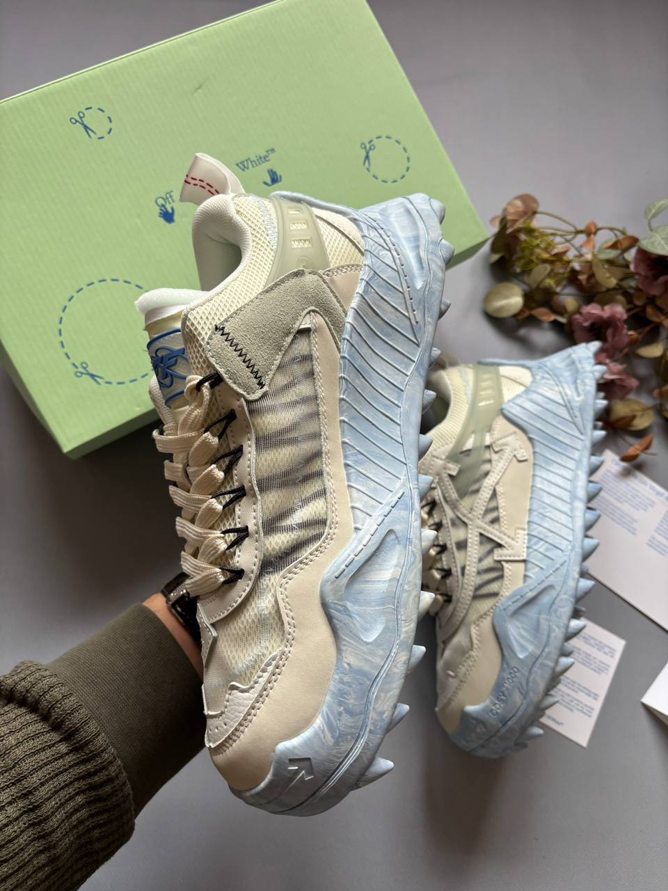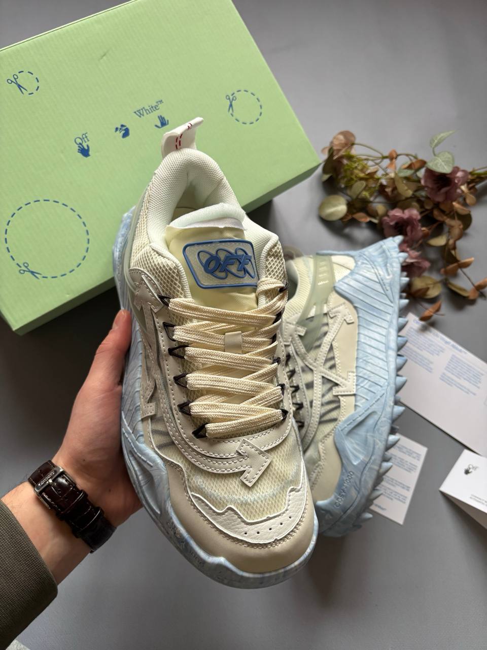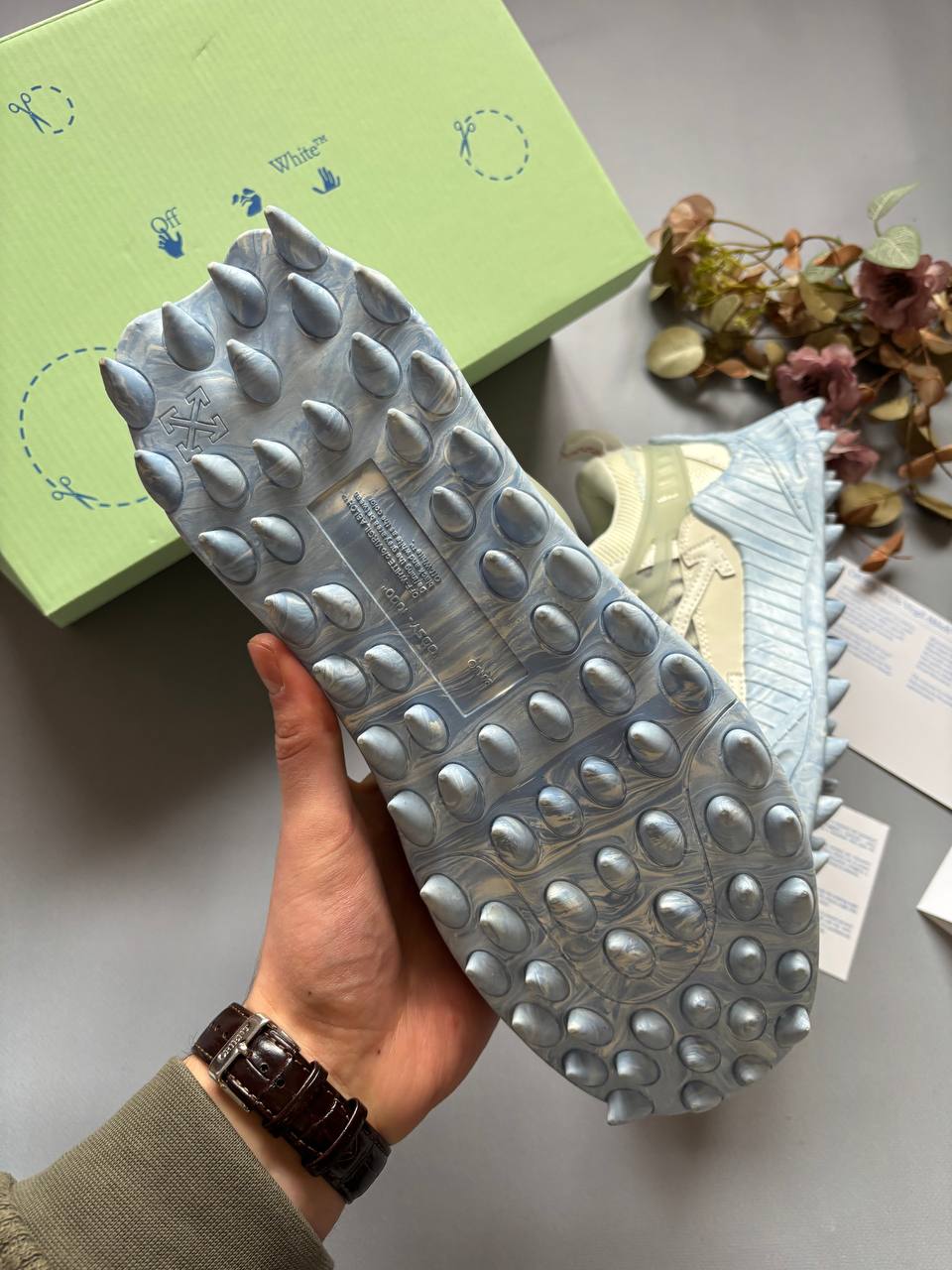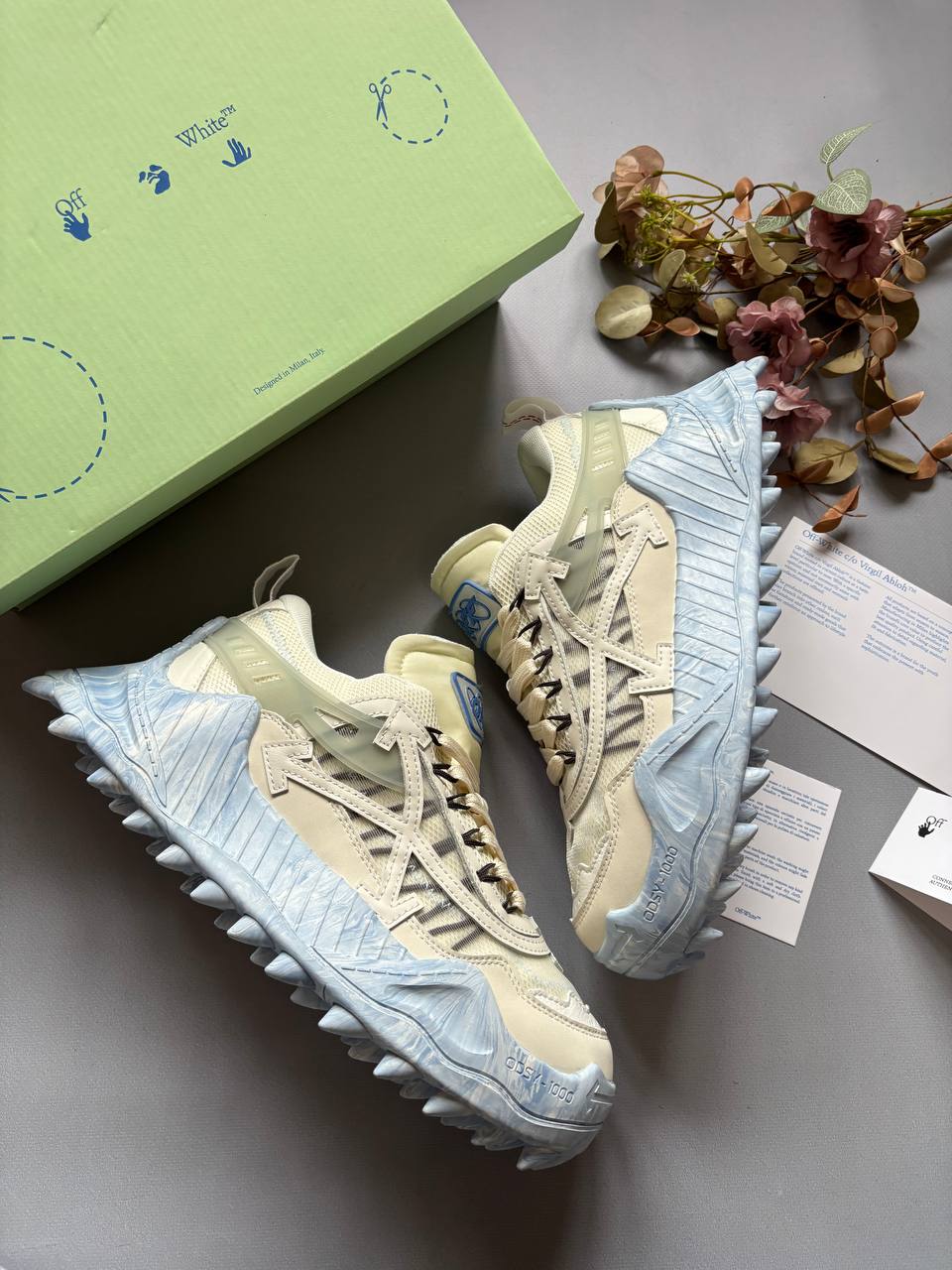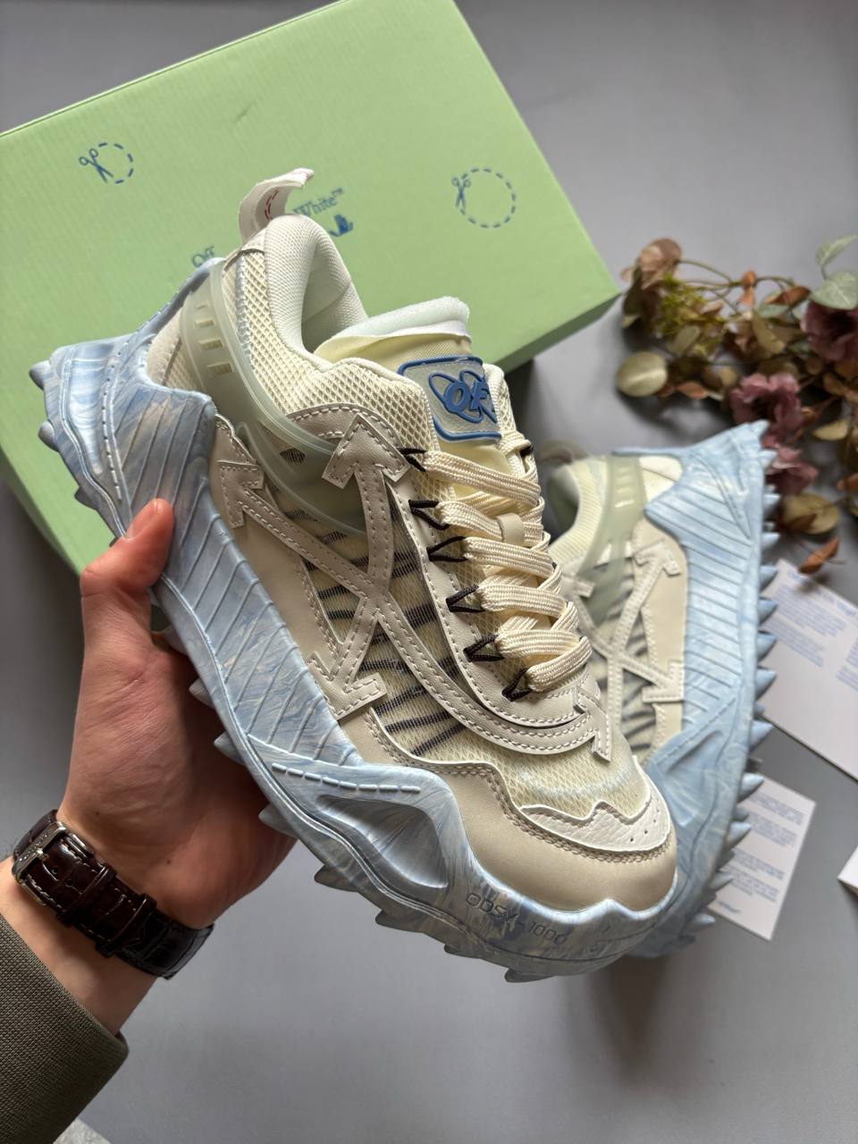 Off-White Odsy-1000 White Blue — це кросівки в білому та блакитному кольорах із характерними деталями Off-White, поєднуючи футуристичний дизайн із вуличною естетикою.