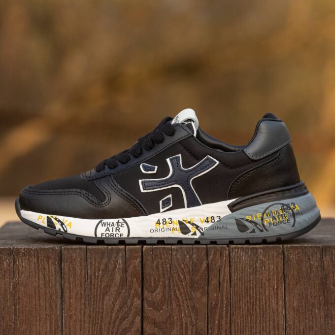Premiata Beige Black — це преміальні кросівки з поєднанням бежевих і чорних відтінків, які вирізняються вишуканим дизайном, якісними матеріалами та комфортною посадкою.