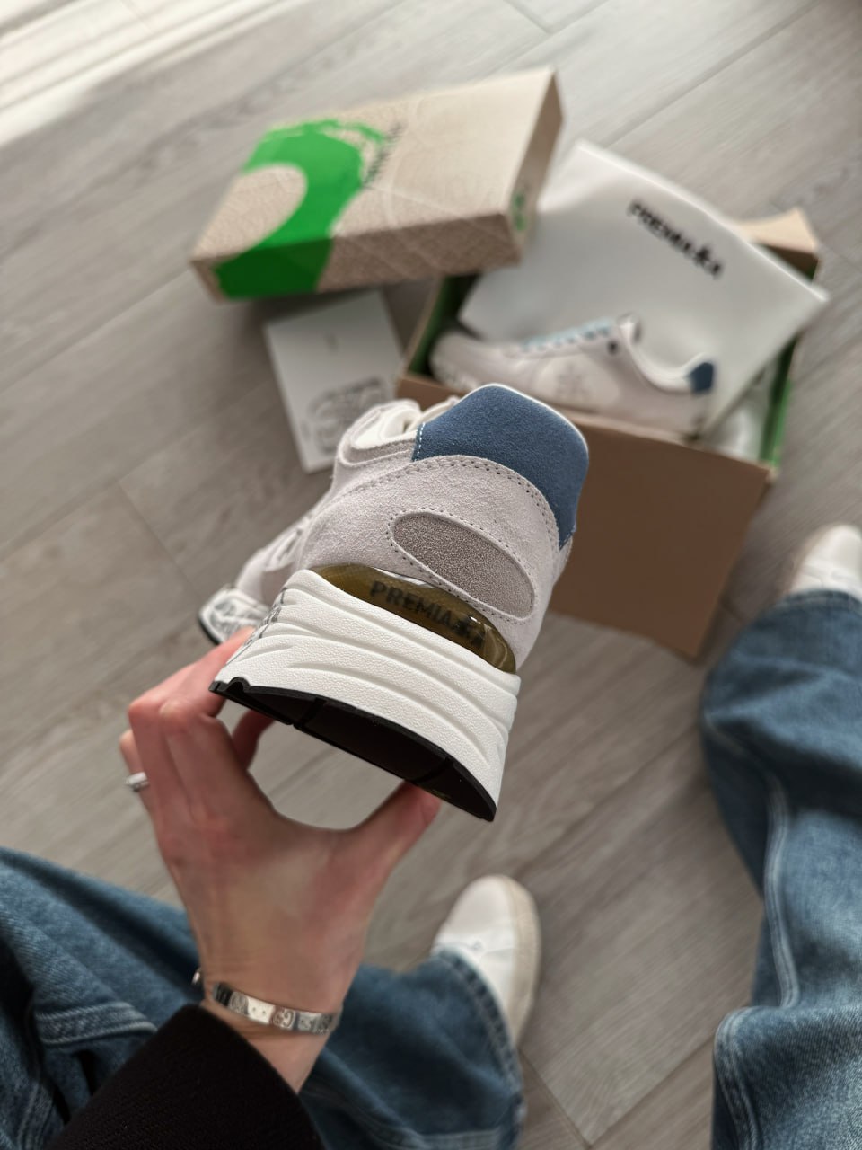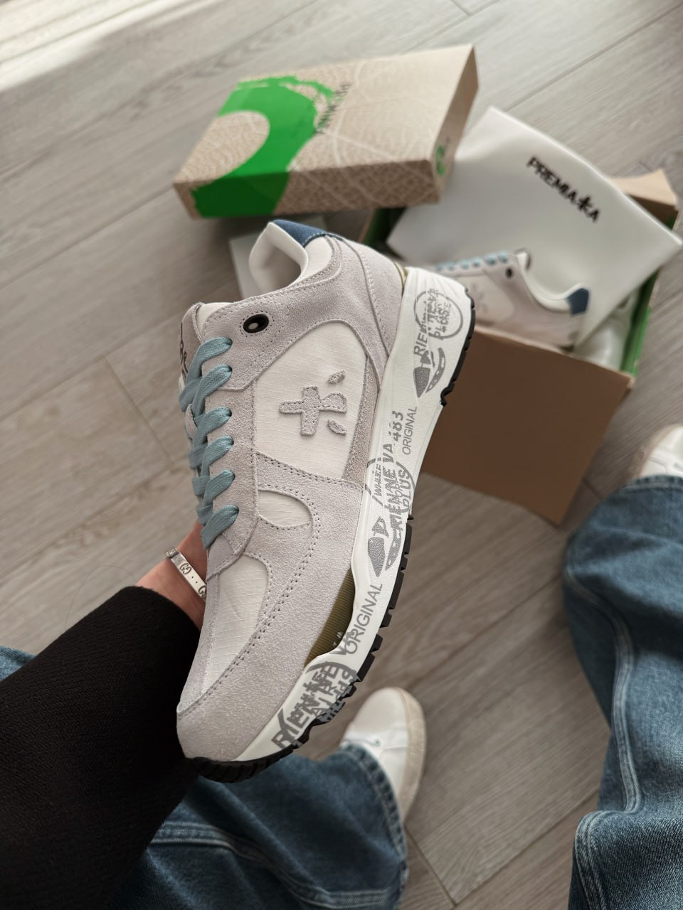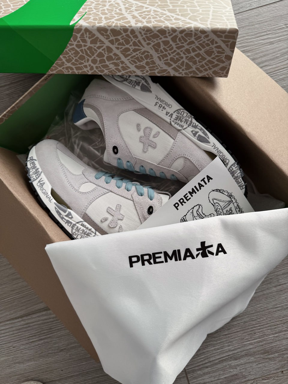 Premiata Lander White Blue — це стильні чоловічі кросівки преміумкласу в біло-блакитній гамі, що поєднують сучасний спортивний дизайн, високоякісні матеріали та фірмову масивну підошву з виразним брендуванням.