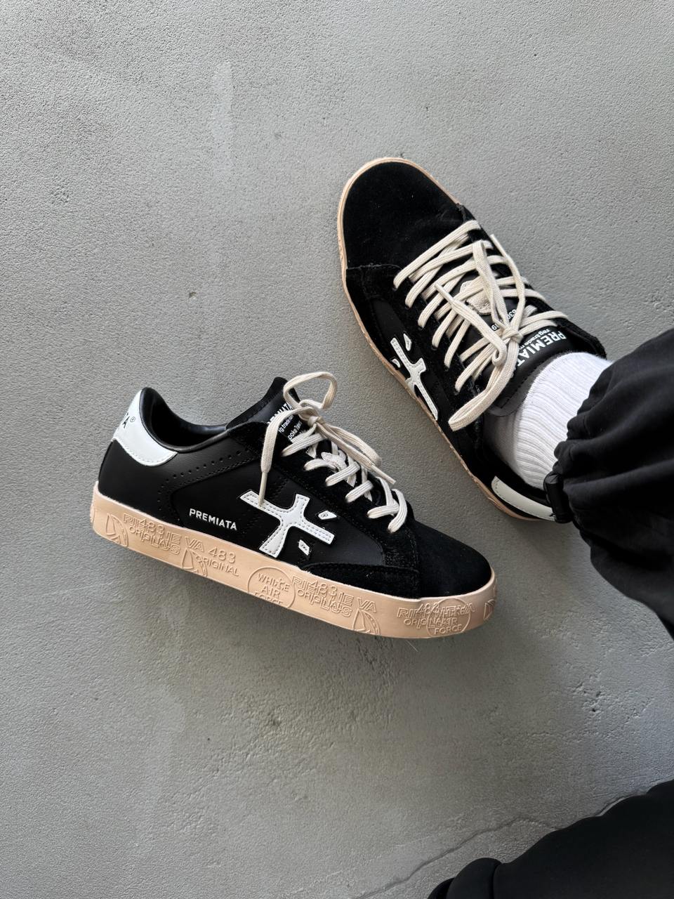 Premiata Steven Black — це стильні та розкішні кросівки чорного кольору, які поєднують сучасний дизайн з високоякісними матеріалами, створюючи елегантний та комфортний образ.