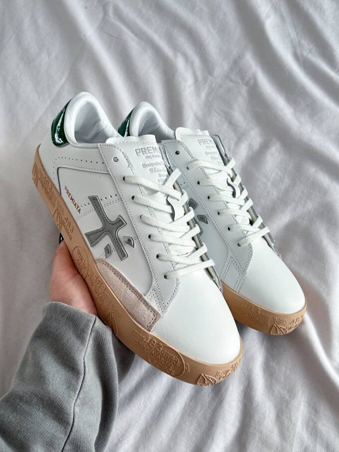 Premiata Steven White Beige — це стильні кросівки з поєднанням білого та бежевого кольорів, виконані з високоякісних матеріалів, що поєднують комфорт і елегантний сучасний дизайн.
