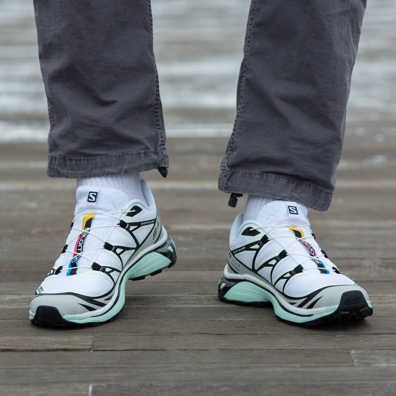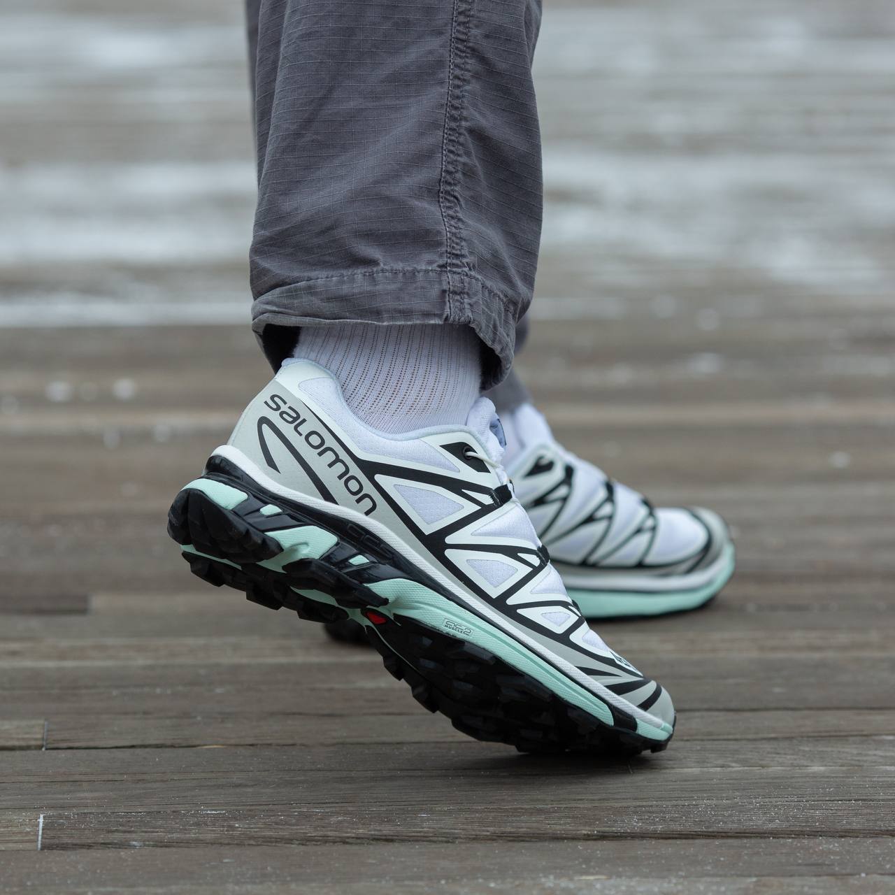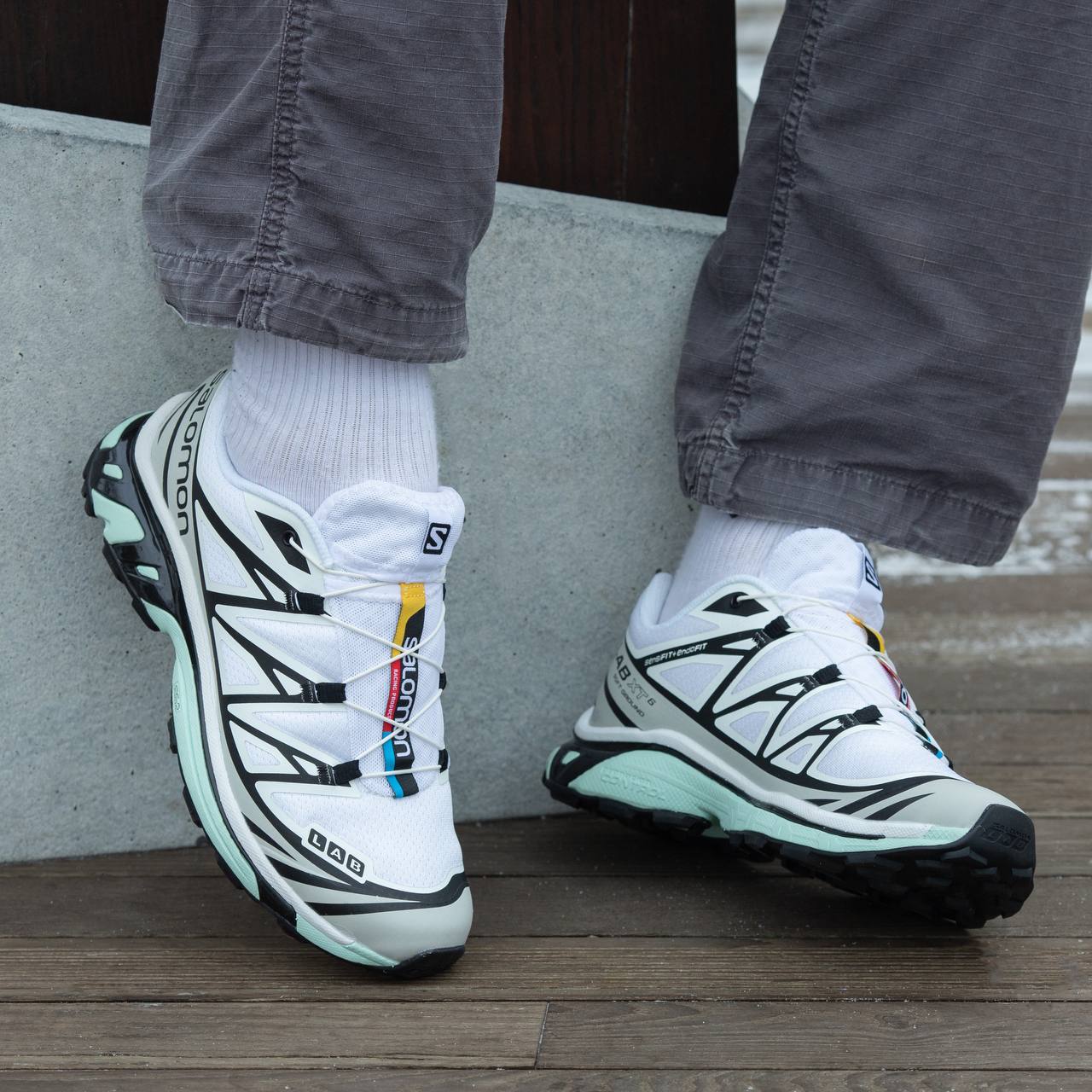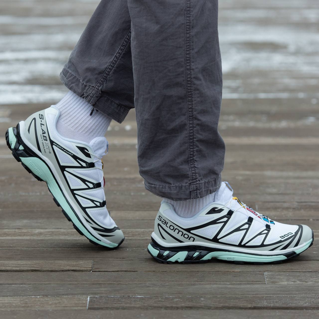 Salomon S/LAB XT-6 White Icy Morn — це поєднання трейлового силуету, світлої холодної палітри та щоденного комфорту. Відтінки white та icy morn створюють легкий, свіжий образ із технологічним настроєм, а функціональний дизайн підкреслює динамічний характер моделі.