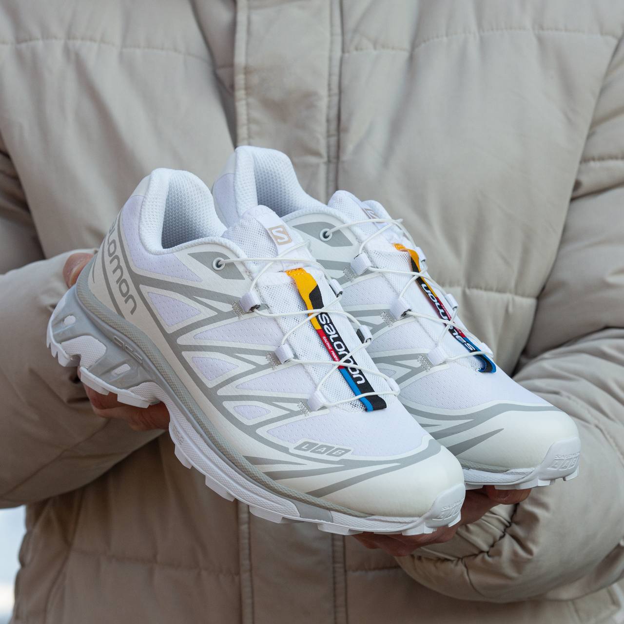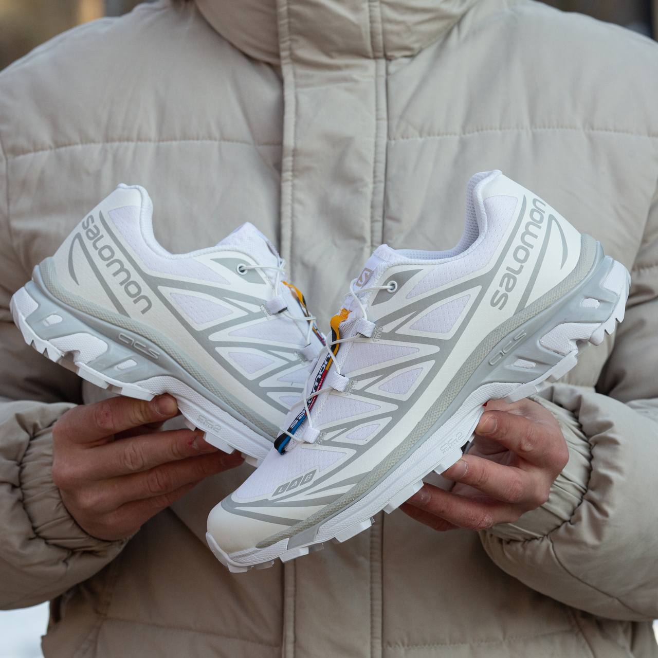 Salomon S/LAB XT-6 White Silver — це поєднання технічного трейлового силуету, світлої біло-сріблястої палітри та високого рівня щоденного комфорту. Поєднання білого та срібного створює чистий, сучасний і технологічний образ, а функціональний дизайн моделі підкреслює її витривалий характер і спортивну ДНК.