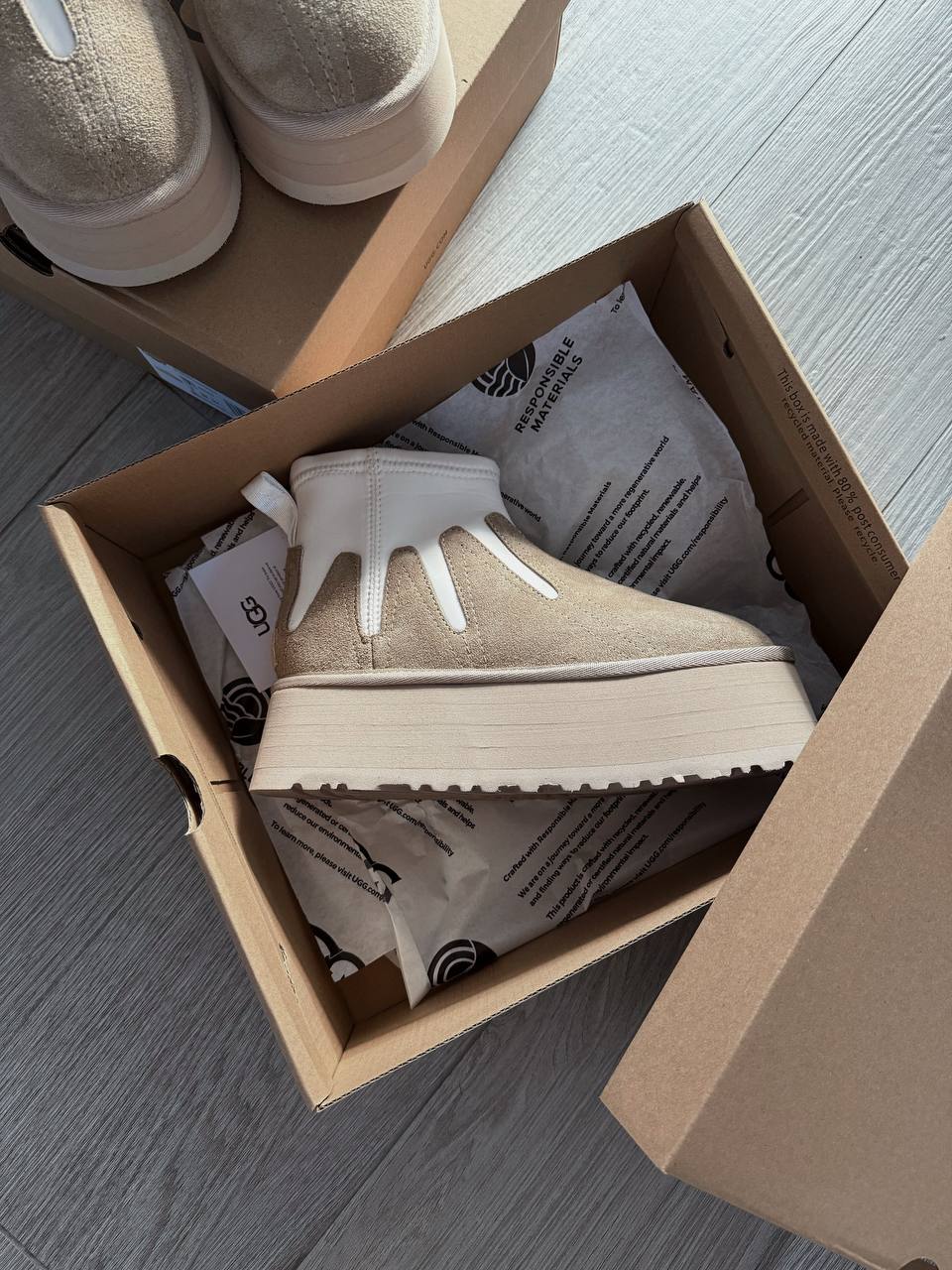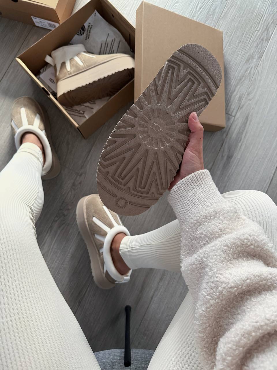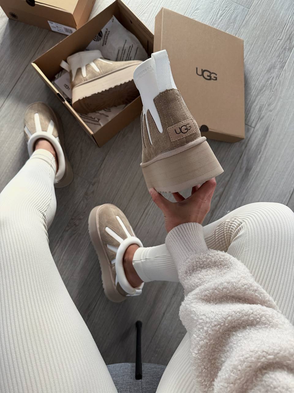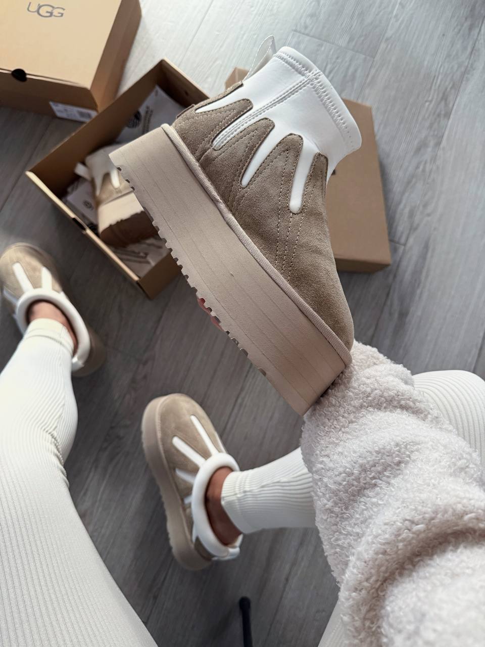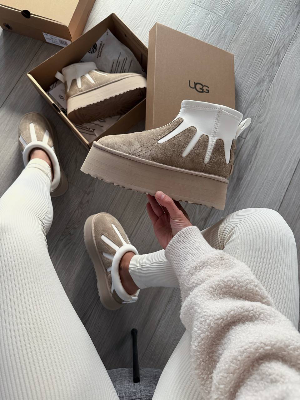 Ugg Classic Mini Dipper Platform Ankle Boots Neutrals — це короткі замшеві чобітки на платформі в нейтральних відтінках, що поєднують фірмовий комфорт UGG із сучасним міським стилем.