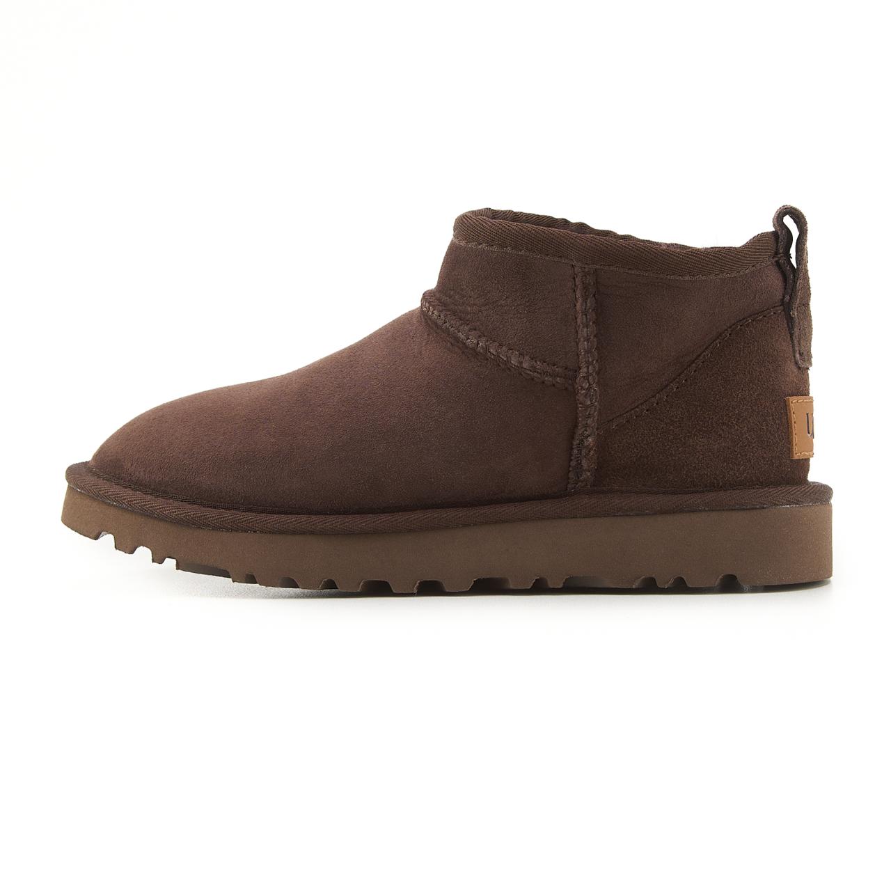 UGG Classic Ultra Mini Brown — це стильні та зручні черевики з м’якої коричневої замші, з утепленим овчиною внутрішнім шаром, підошвою з гуми та UGGplush™ устілкою для додаткового комфорту.