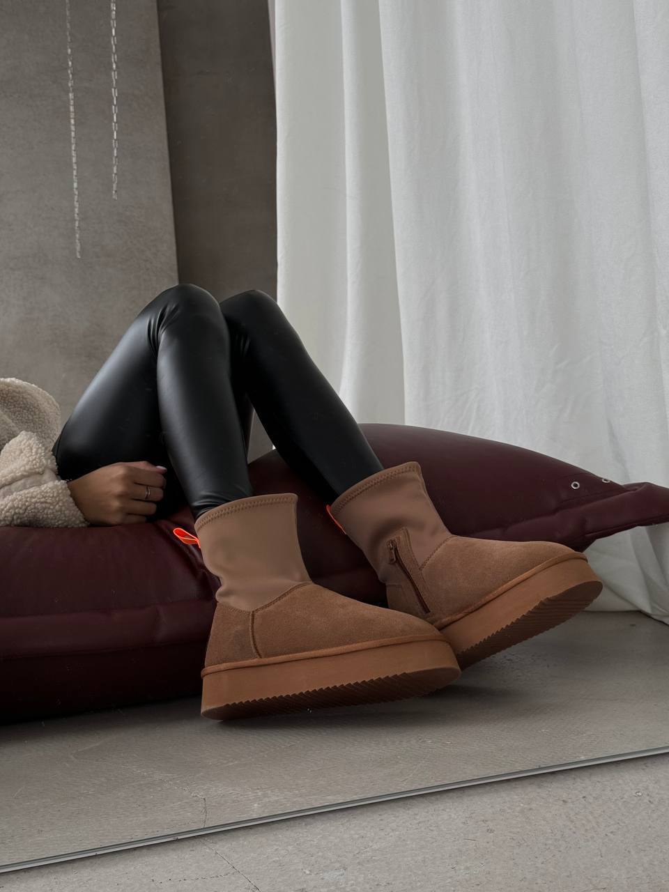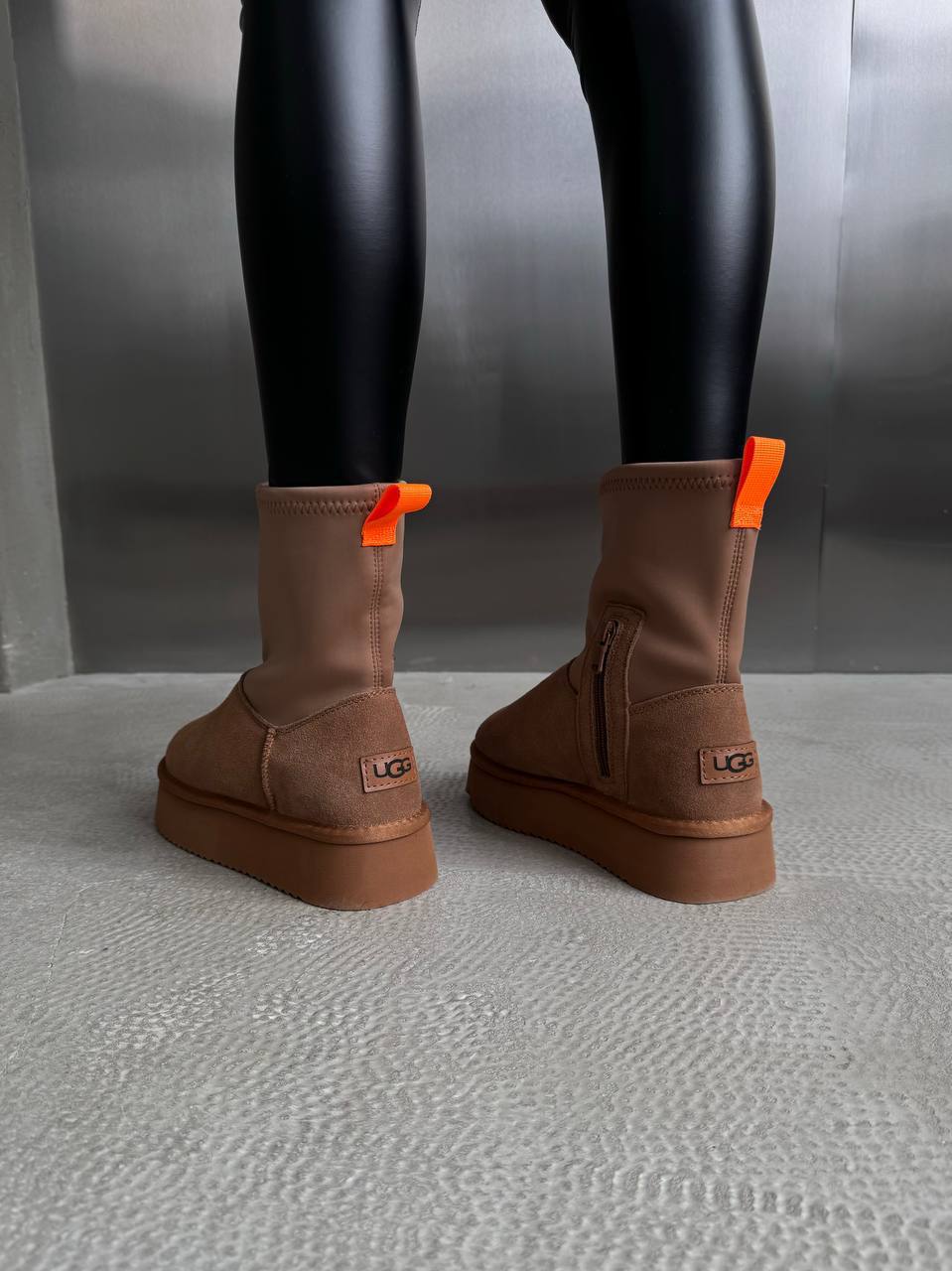 UGG Dipper Boots Ginger — це сучасні чоботи з рудої замші з високою водонепроникною основою та блискавкою, що поєднують стиль, зручність і захист у прохолодну погоду.