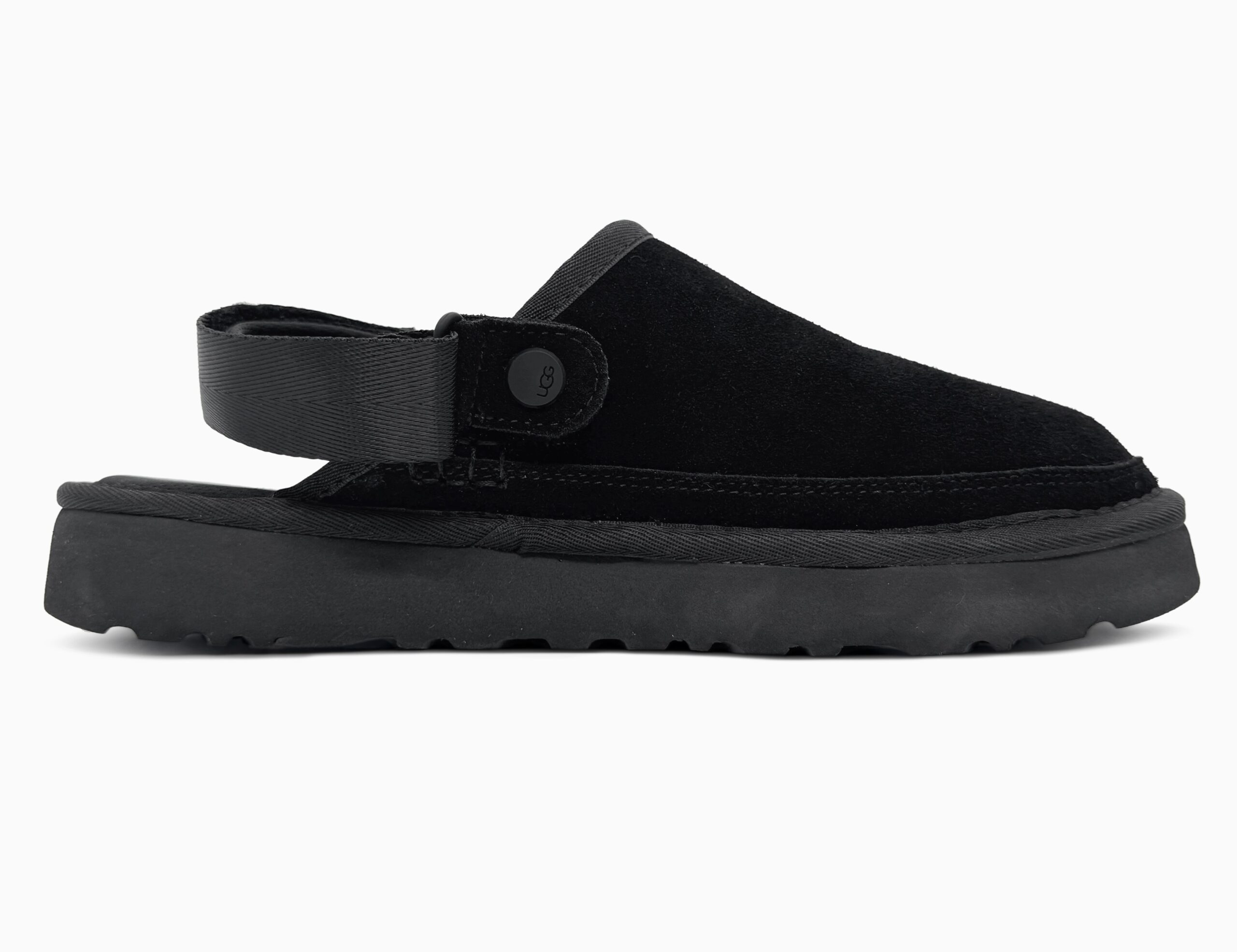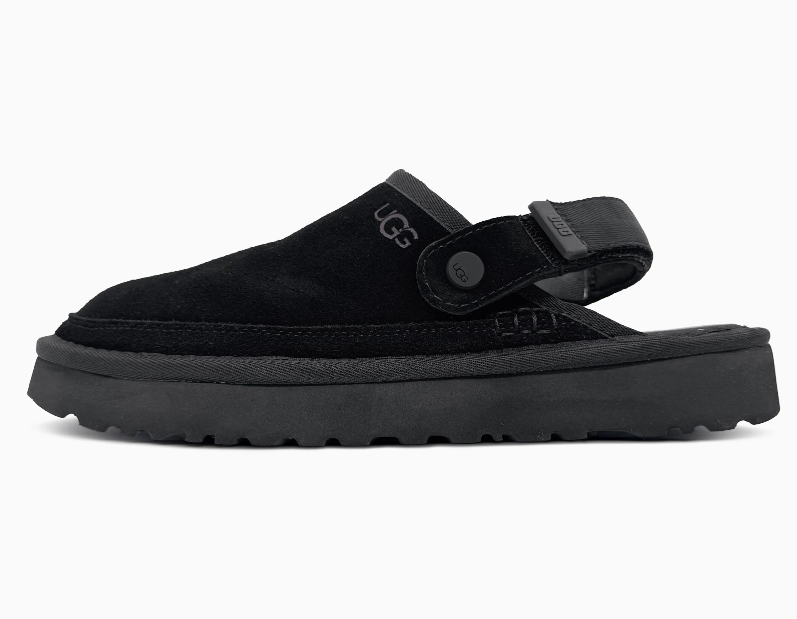 Ugg Goldenstar Clog Black — це універсальні чорні замшеві сабо на зручній платформі з м’якою устілкою та трансформованим ремінцем для комфортного щоденного носіння.