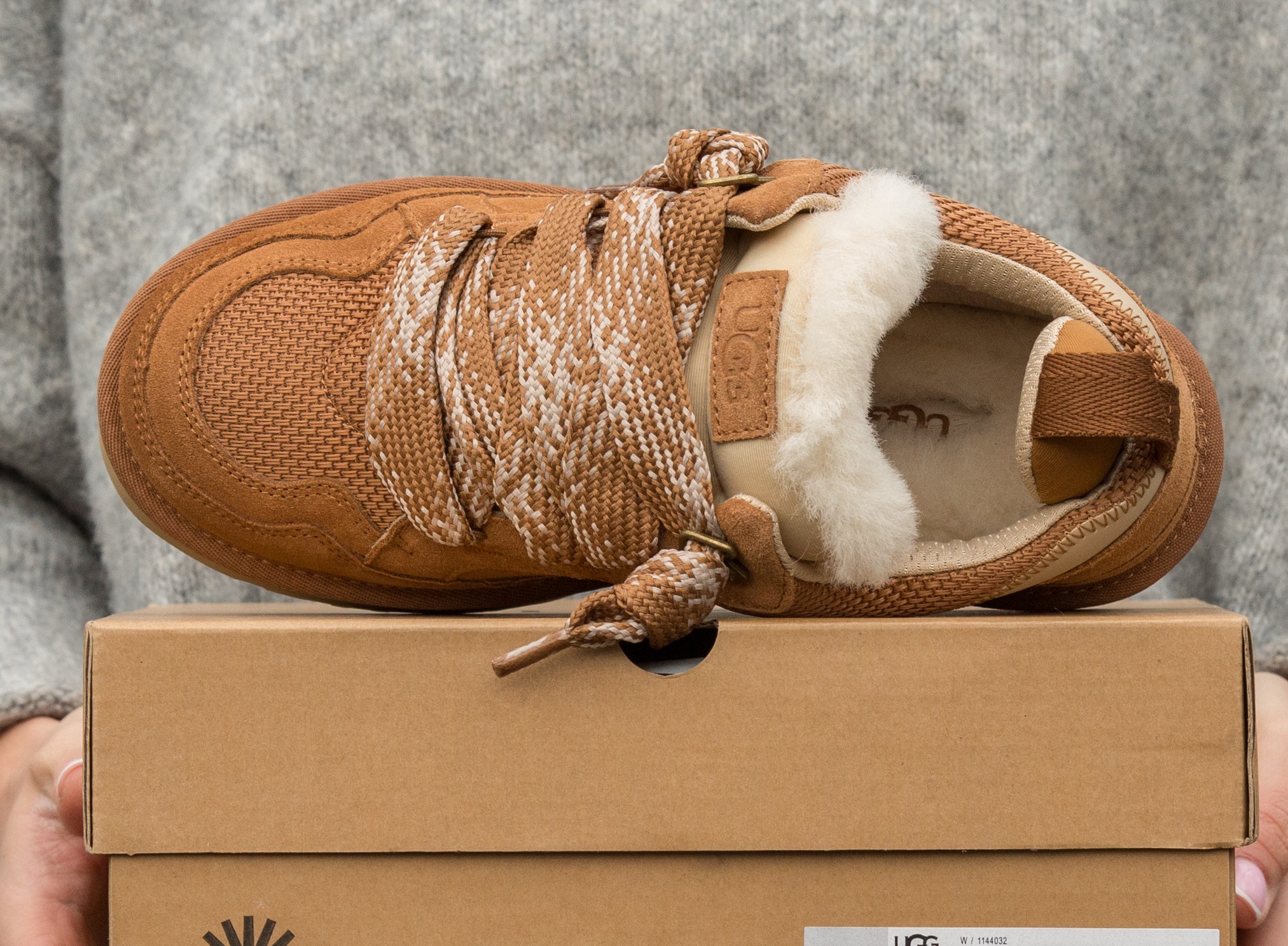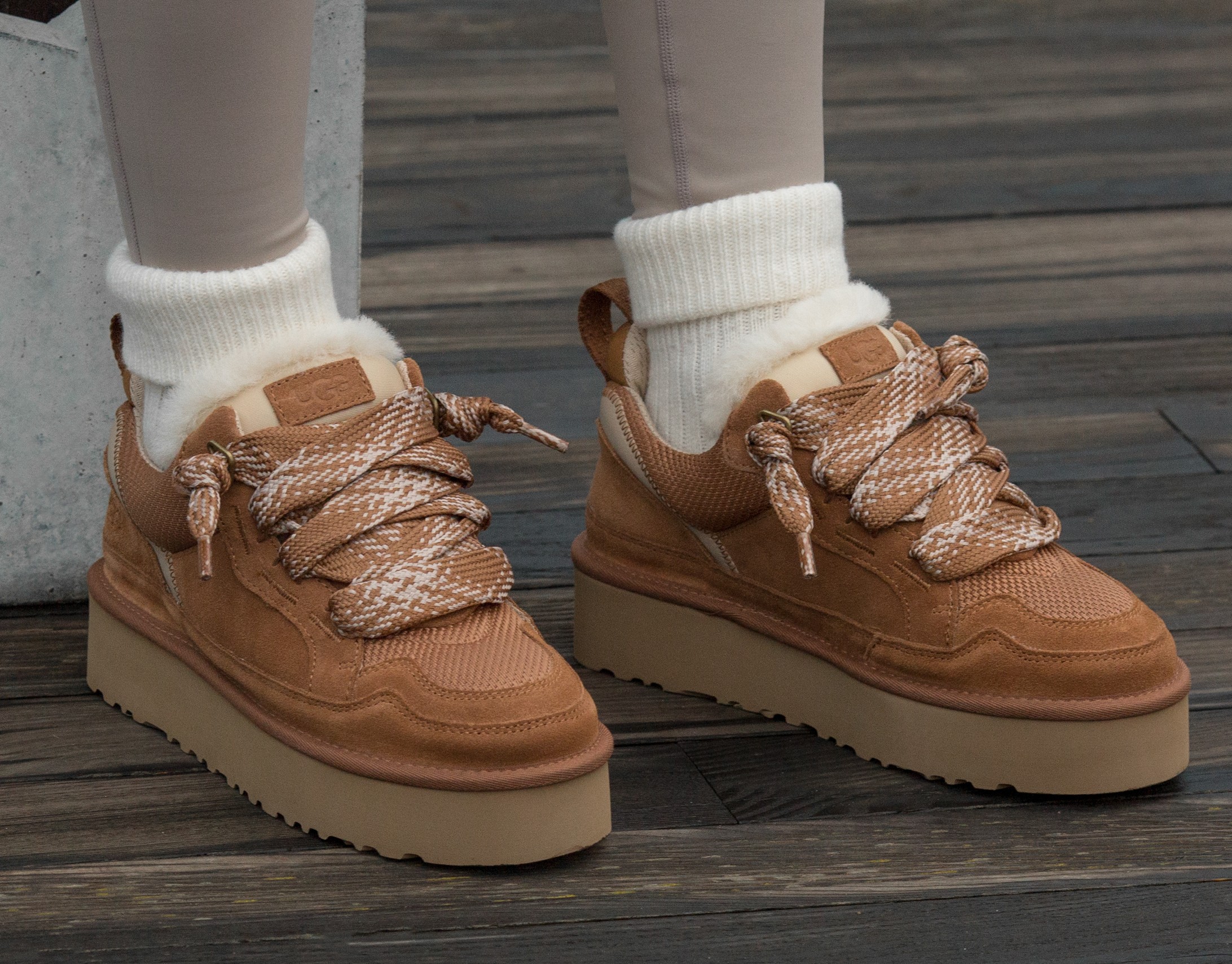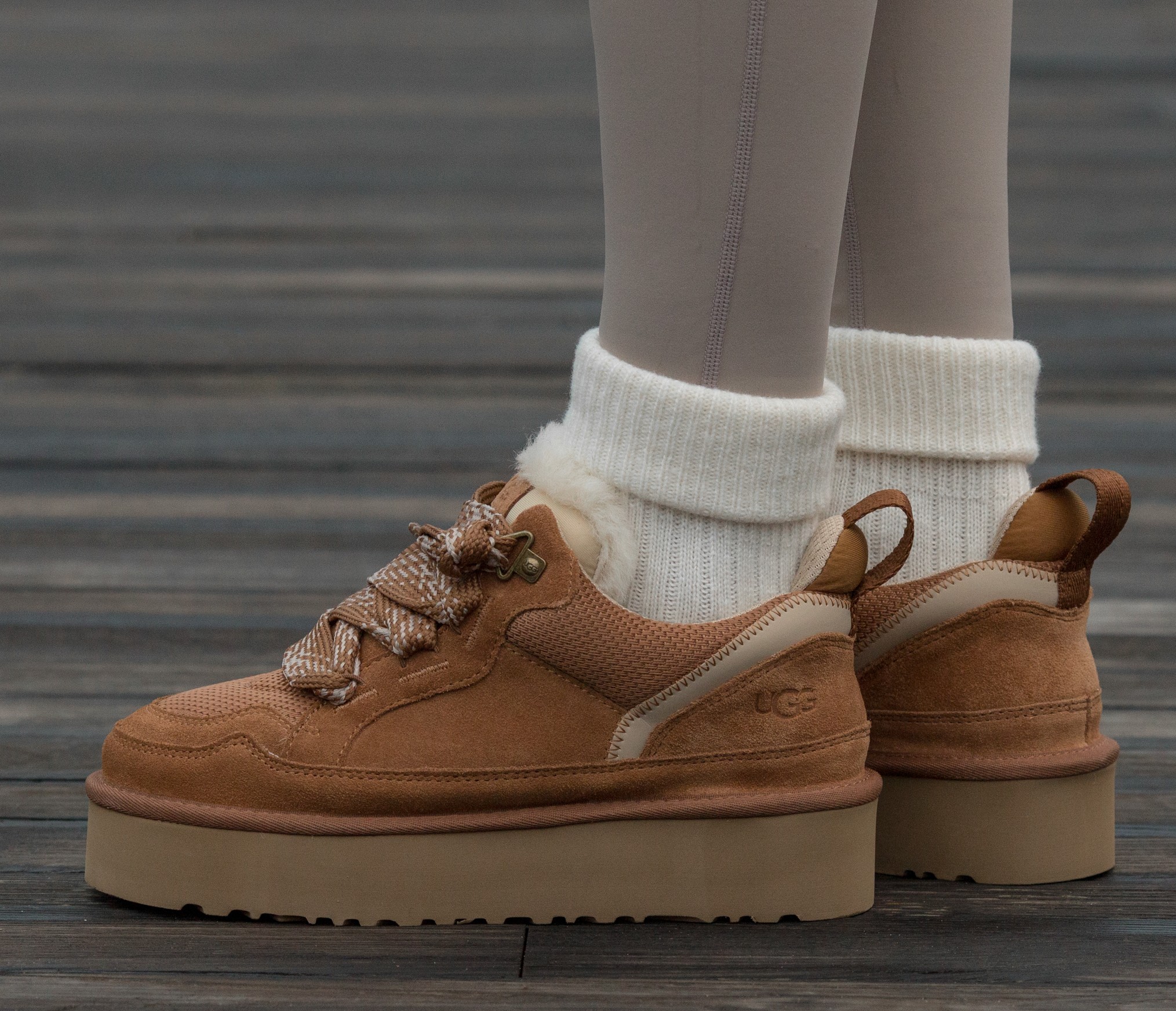 Ugg Lowmel Sneaker Platform Chestnut — це стильні коричневі кросівки з хутром на високій платформі з м’якою амортизацією та характерним комфортом UGG для повсякденного носіння.
