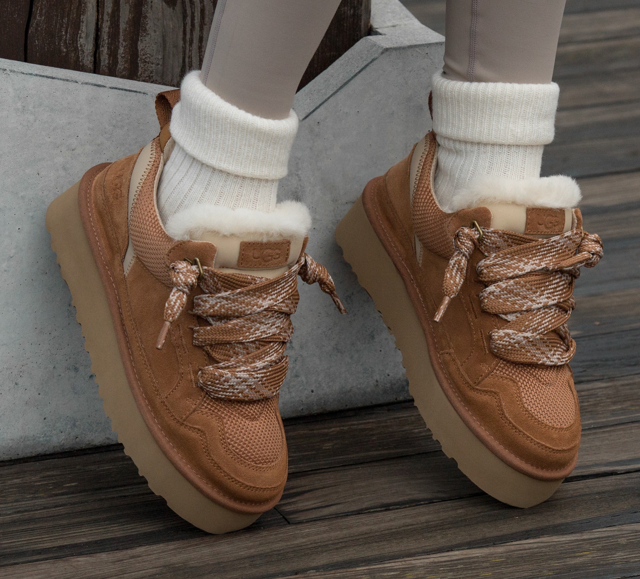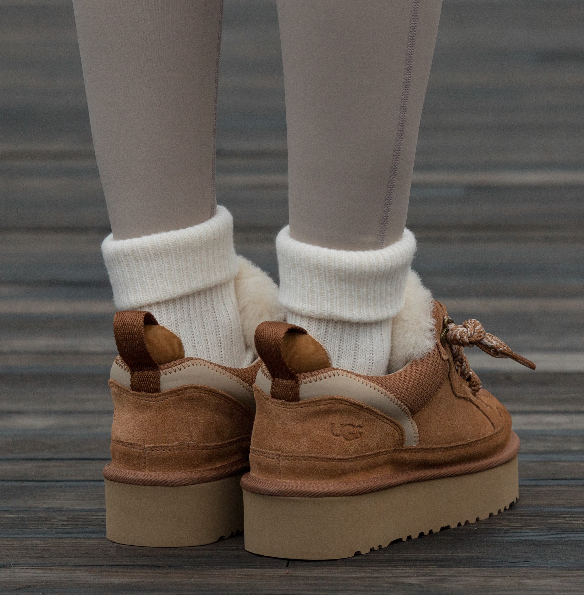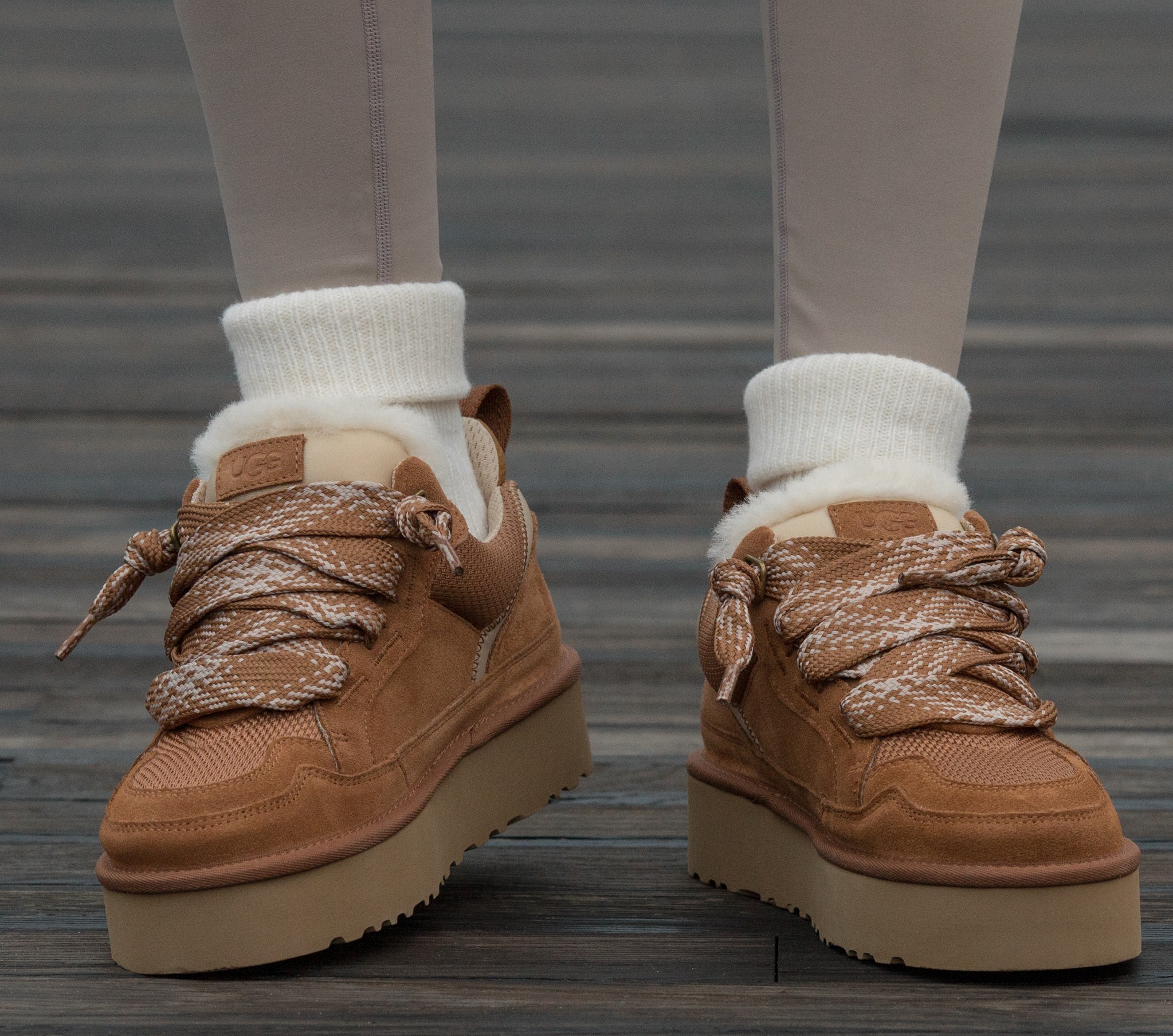 Ugg Lowmel Sneaker Platform Chestnut — це стильні коричневі кросівки з хутром на високій платформі з м’якою амортизацією та характерним комфортом UGG для повсякденного носіння.