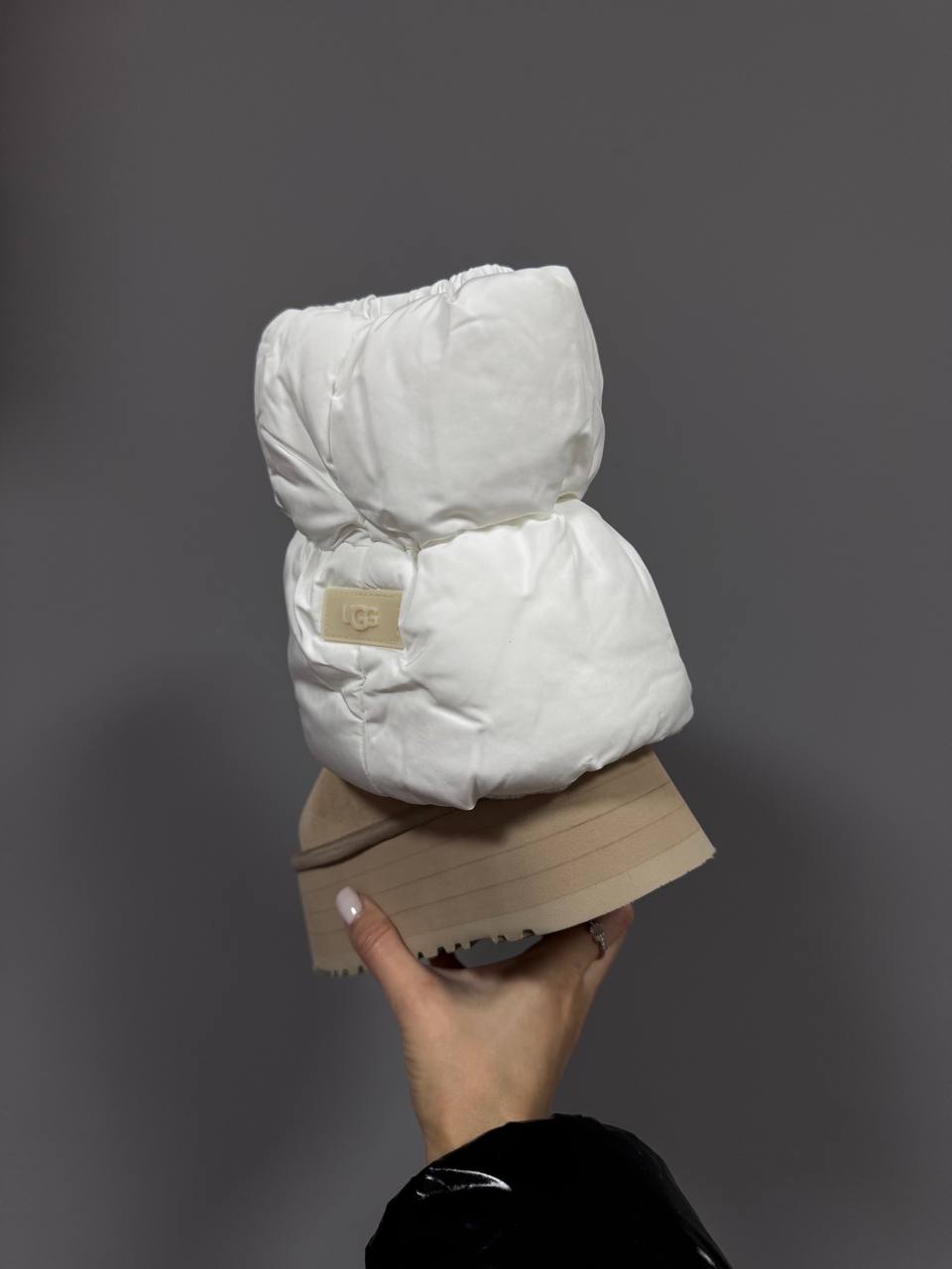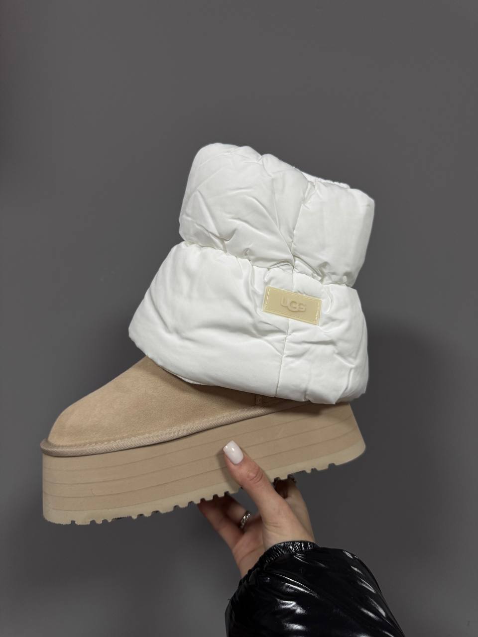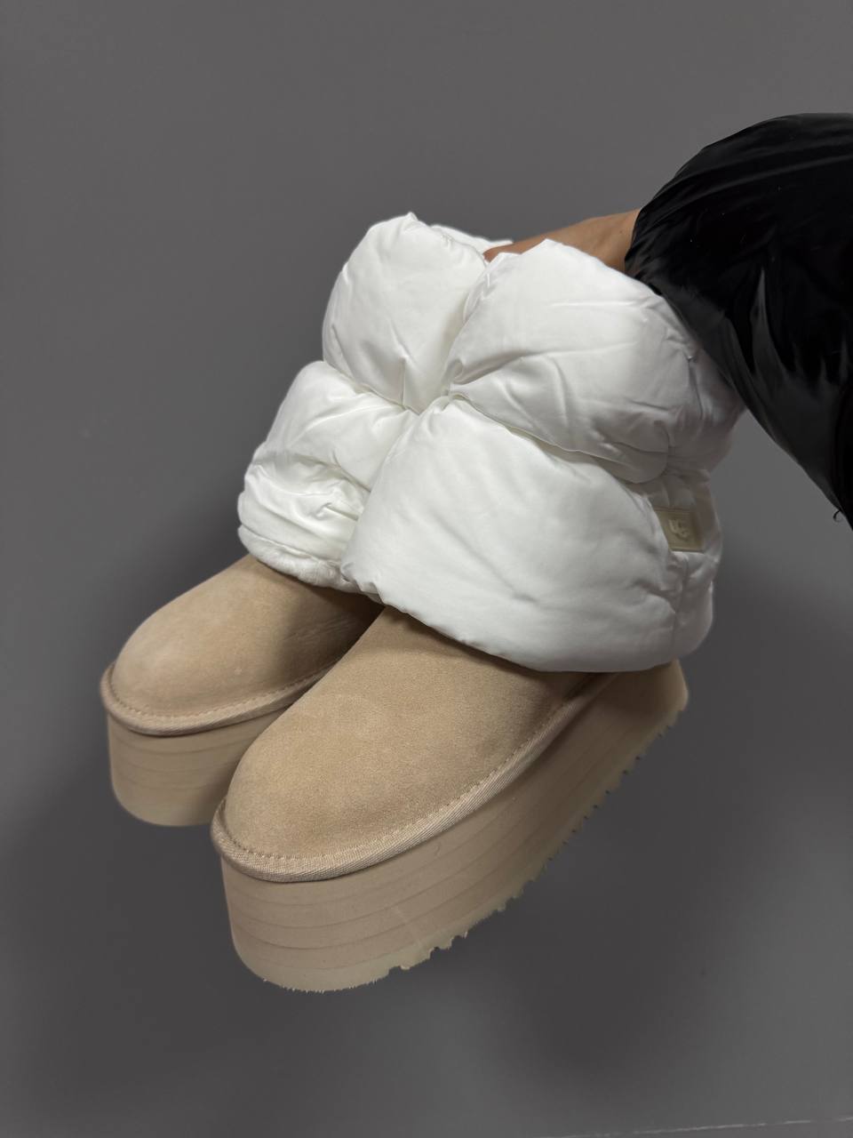 Ugg Mini Dipper Puffer Sand — укорочені черевики-пуховики з пінопідошвою від UGG, з неопреновим верхом і утепленою знімною “пуховою” манжетою для стильного й теплого зимового образу