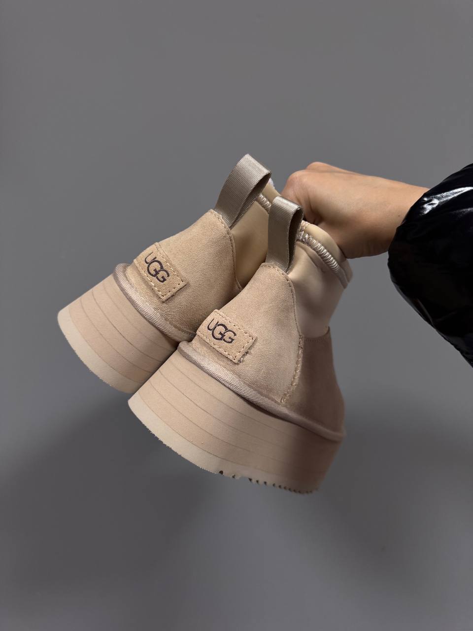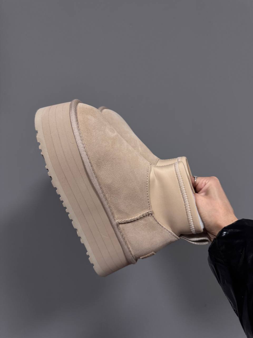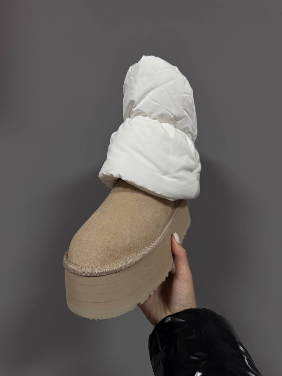 Ugg Mini Dipper Puffer Sand — укорочені черевики-пуховики з пінопідошвою від UGG, з неопреновим верхом і утепленою знімною “пуховою” манжетою для стильного й теплого зимового образу