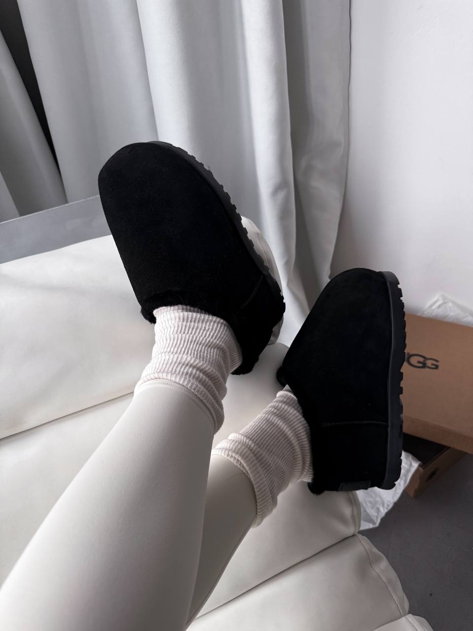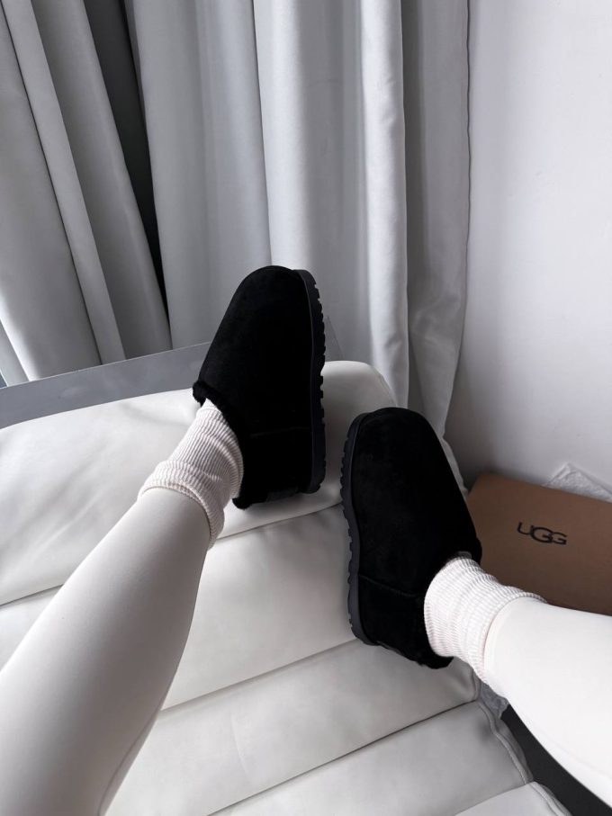 UGG Pumped Slide Black — це стильні чорні сандалі з м’яким хутром, що забезпечують комфорт та сучасний вигляд для холодної погоди.