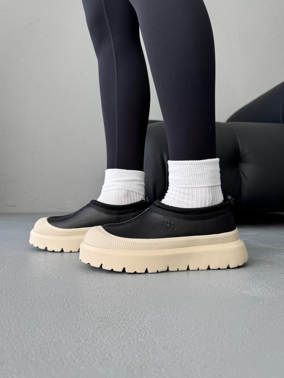 Ugg Tasman Hybrid Black Beige — це стильні та зручні гібридні черевики у поєднанні чорного та бежевого кольорів, що поєднують комфорт тапочок і практичність вуличного взуття.