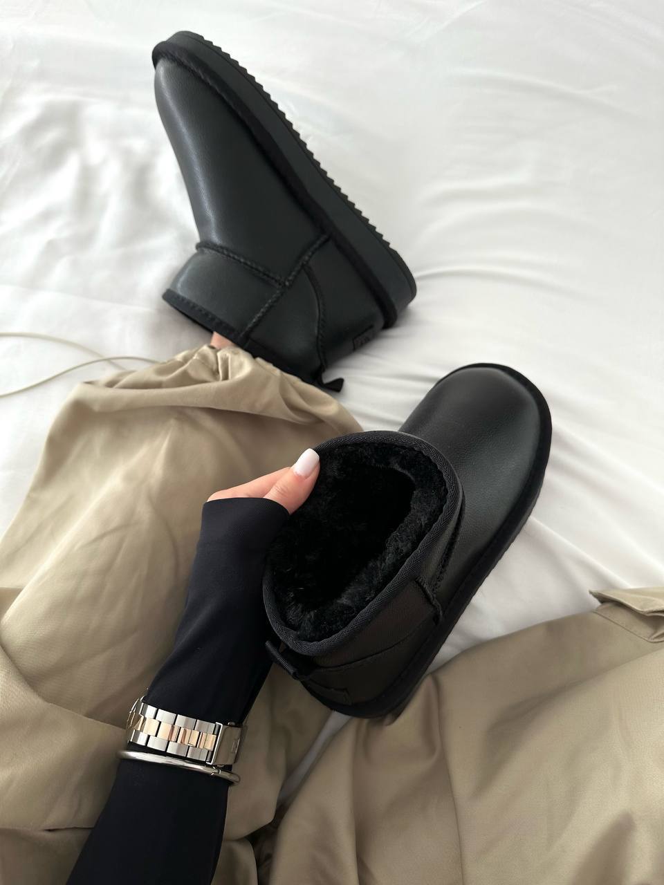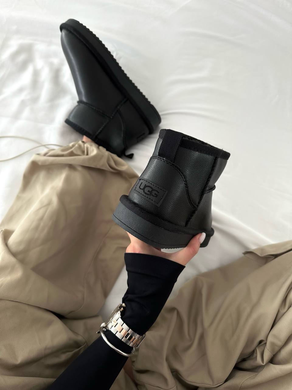 UGG Ultra Mini Black Leather — це низькі зимові черевики з натуральної шкіри в чорному кольорі, що поєднують культовий комфорт UGG із сучасним міським стилем.