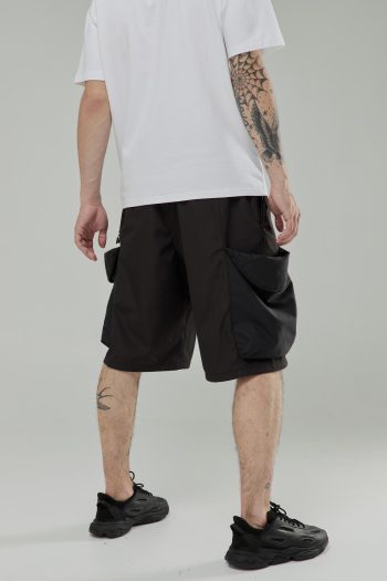 Шорти карго з низькою вільною посадкою, в поясі вбудована резинка для кращої посадки та двосторонній пояс на ремінній стрічці, для точної фіксації по фігурі.